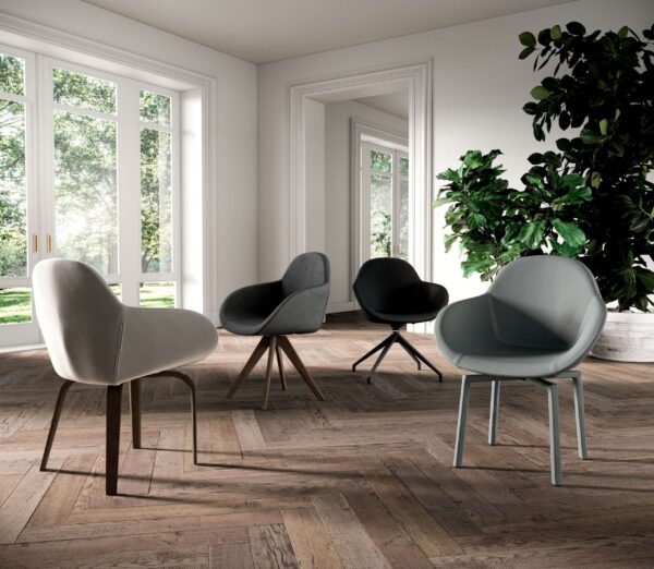 The design of these seats does not compromise on comfort. A style icon with soft shapes that blend perfectly with a modern living room and with an informal office space. It generates a sense of order and refinement. A versatile seat with familiar geometries, generous proportions and enveloping lines.