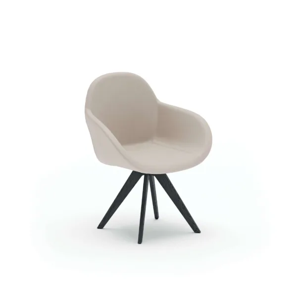 Fully upholstered chair with armrests in various finishes. Dyed beech structure.
