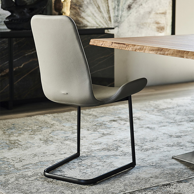 The four-spoke spider leg can be selected with a nylon or embossed lacquered aluminium finish, while the sleigh leg comes in an array of embossed lacquered steel colourways.