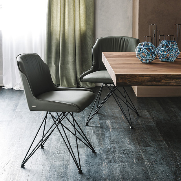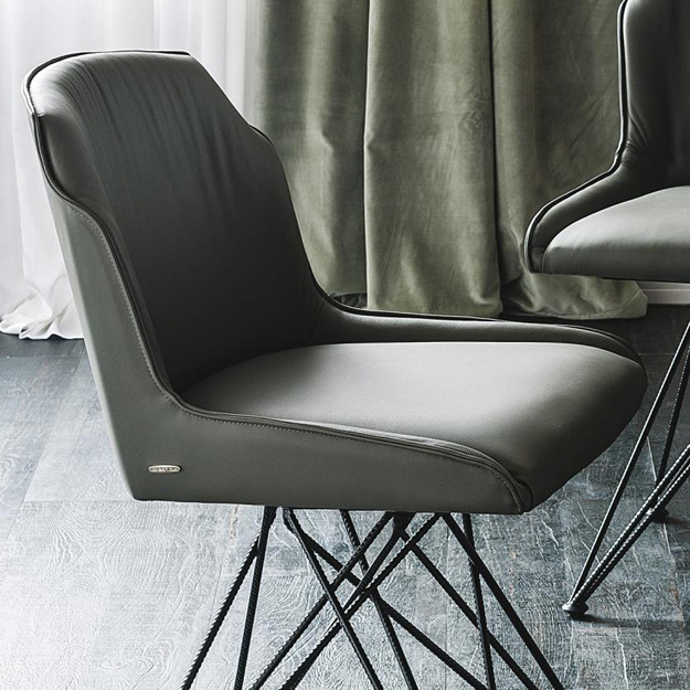 The Flaminia is an elegant swivel chair with a striking spider-leg inspired steel frame, which comes in a choice of colourways. The sophisticated seat and backrest are upholstered in a range of real and synthetic leather finishes. Available in two sizes, with or without arms.