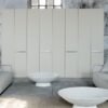 Wardrobe with an original design. The entire door is wrapped in a strip of wood that creates the handle. Modular interiors with fronts in smoky glass or leather. Available in different finishes. All these Designs are Fully Bespoke . Our Expert Team can create any Design as per your specifications and requirements. For More information please contact our expert.