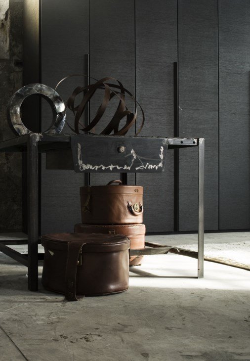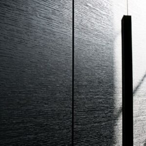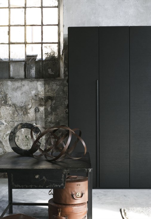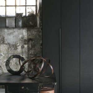 Wardrobe with an original design. The entire door is wrapped in a strip of wood that creates the handle. Modular interiors with fronts in smoky glass or leather. Available in different finishes. All these Designs are Fully Bespoke . Our Expert Team can create any Design as per your specifications and requirements. For More information please contact our expert.