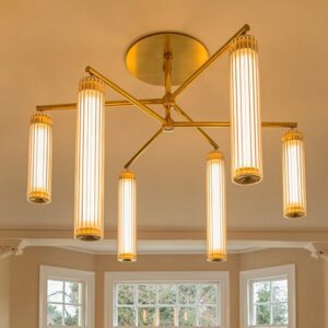 The chandelier itself provides a warm and diffused effect which can easily be dimmed. Available in a 6-arm arrangements.