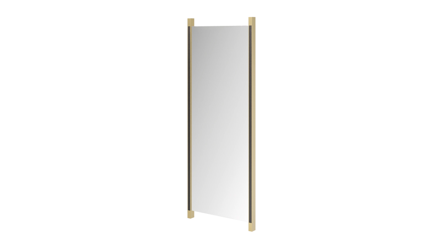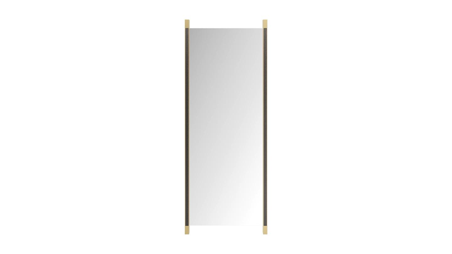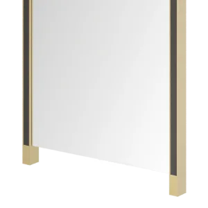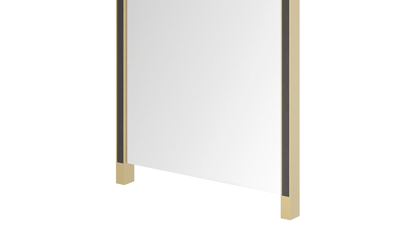 With its angular form, the GALWAY II mirror commands attention. Brushed brass accents feature wood veneer inlays for a stand-out finish.