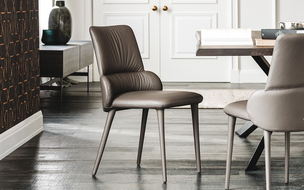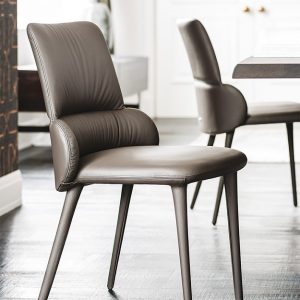 The Ginger is a curvaceous and stylish fully upholstered chair by Cattelan Italia. The design of the curved backrest features padding for added comfort and can be upholstered in a wide range of synthetic or soft leathers from the collection.