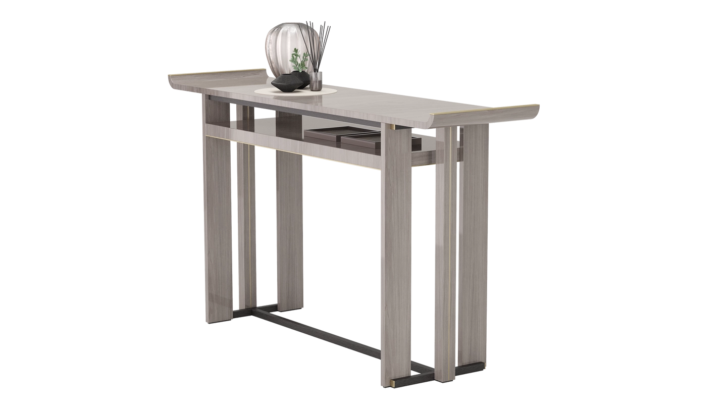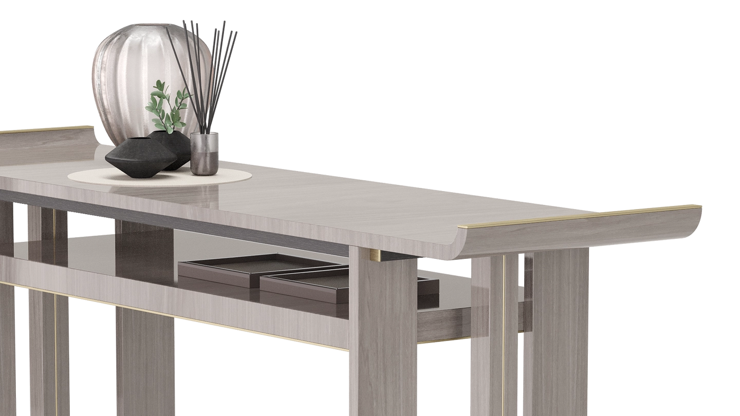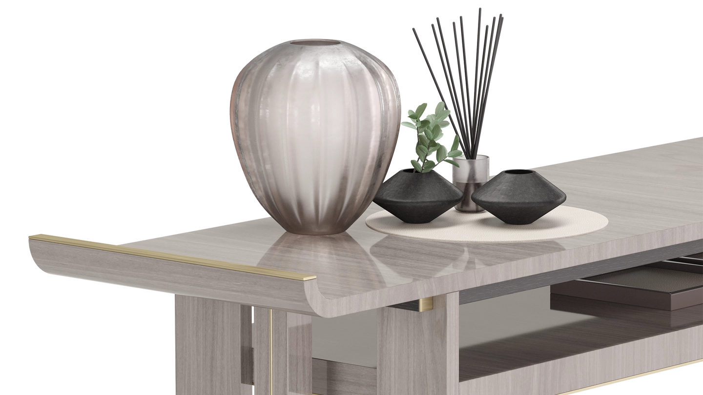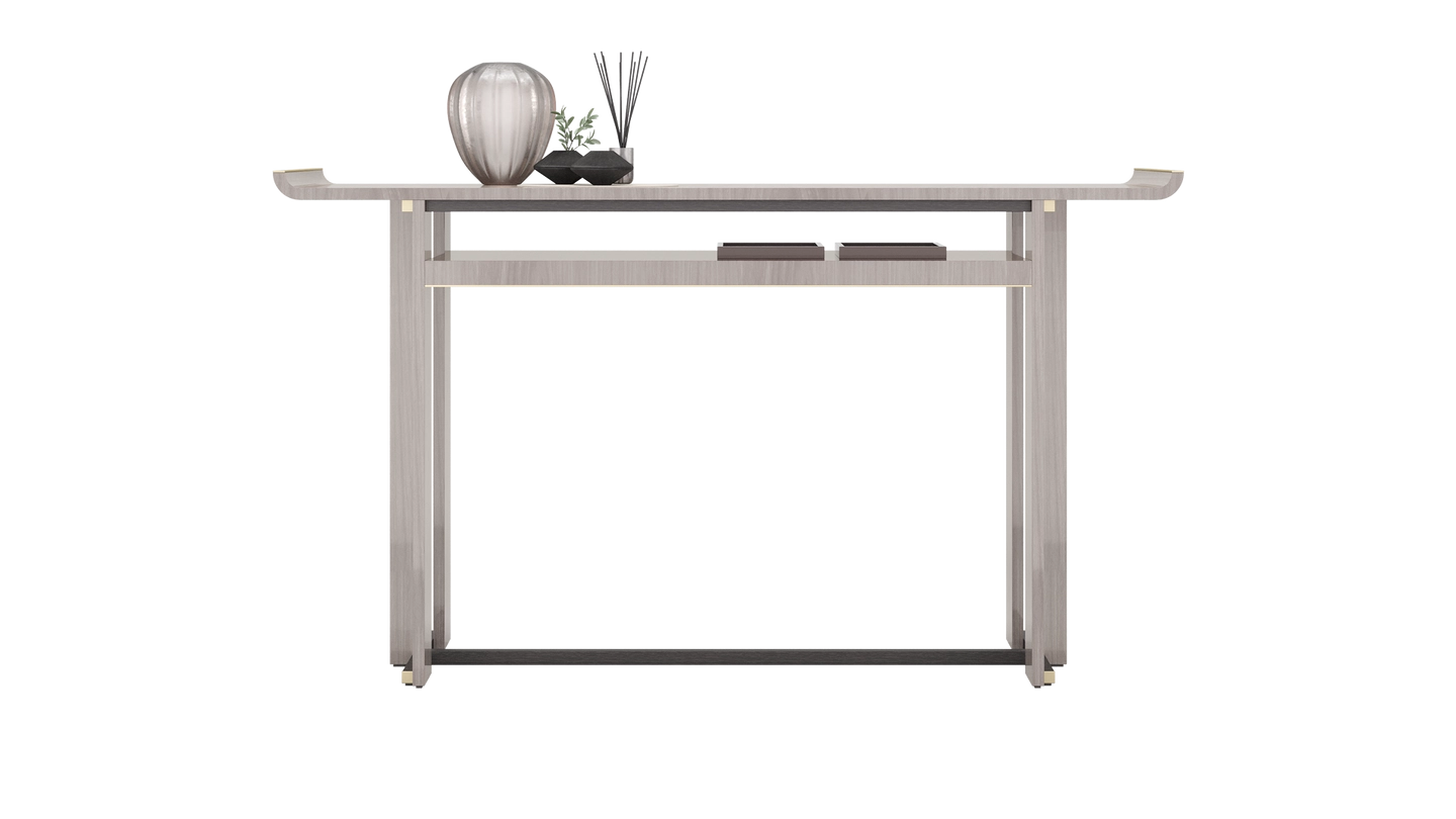 Paying homage to the iconic shape of Japan’s traditional torii gates, most commonly found at the entrance to Shinto shrines, the GINZA console features an upwardly curved top and an easily accessible open shelf.