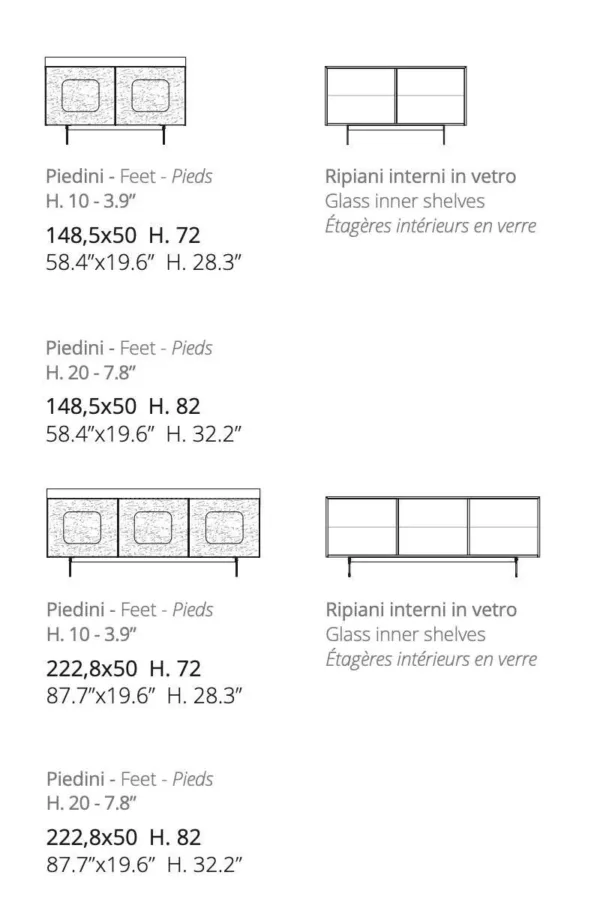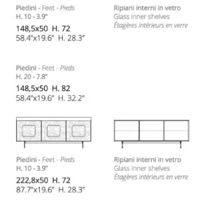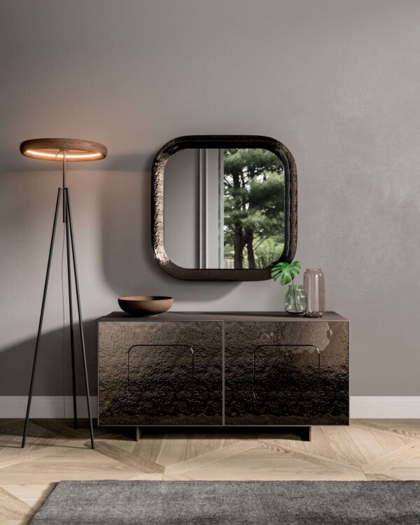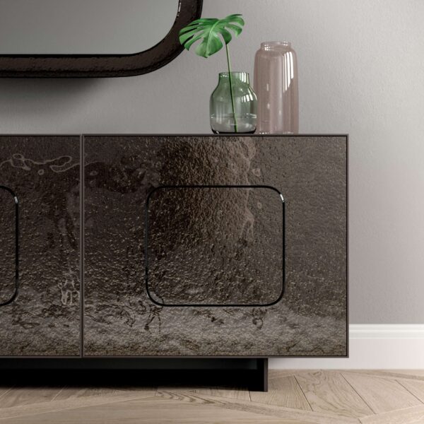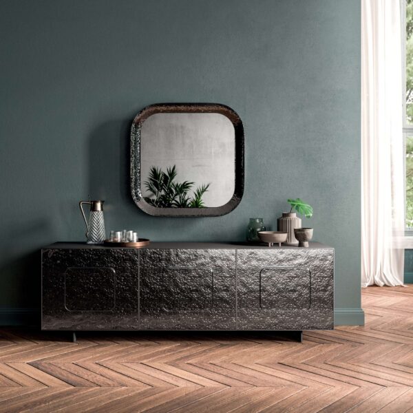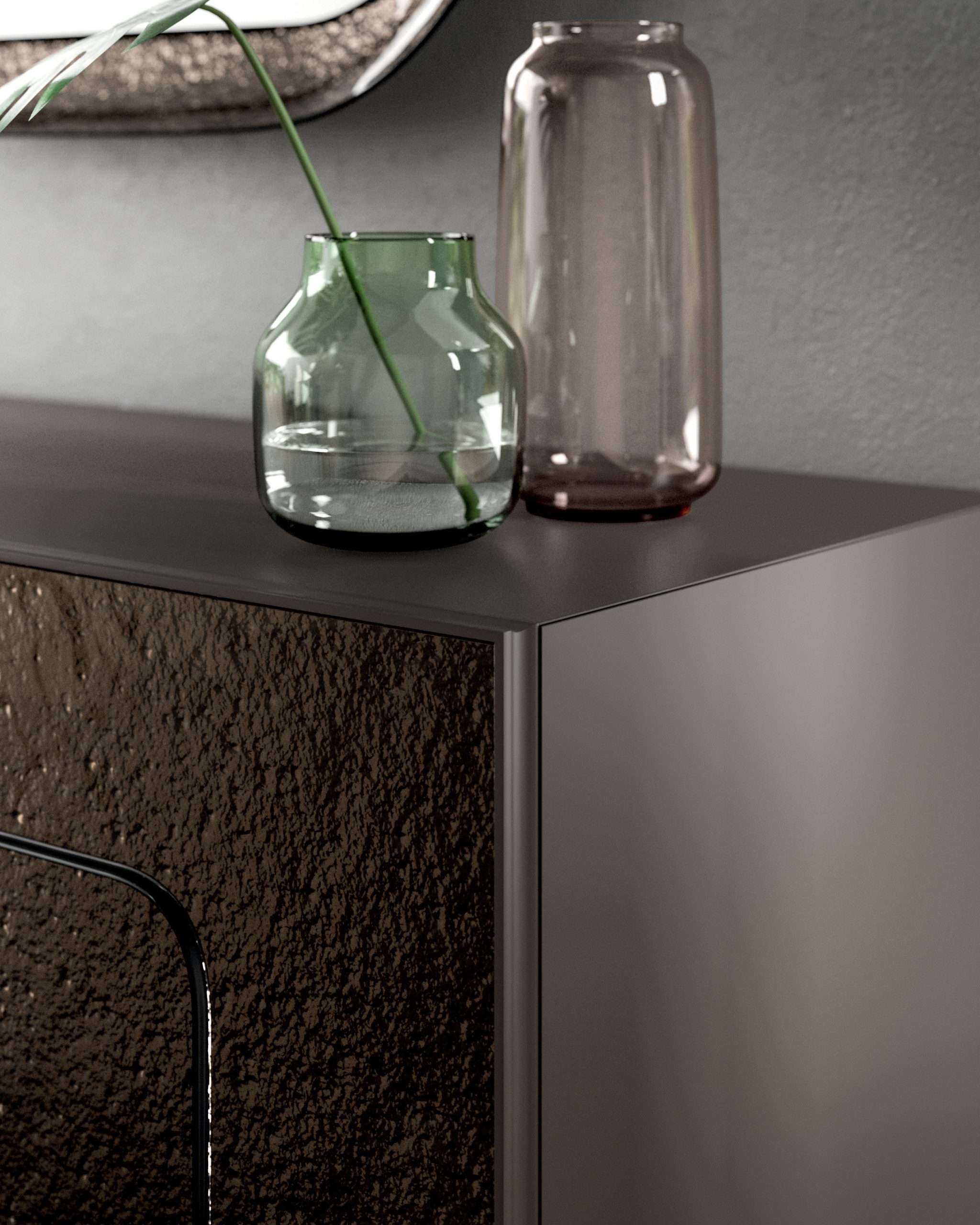 Mirror, mirror on the wall, which is the coolest sideboard of them all? Giulia draws the attention thanks to its shiny silver or bronze texture that overcomes the barrier of time in a splendid return to the future. The luxury of a bold, angular sideboard that shines with personality. Ideal for those who love to amaze.