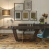 Available in moka oak or sucupira wood, the Glorious understands that what sets this design apart is not only the mixture of materials, the optional draw being available in vegetable tanned leather for example, but the metal work that is incorporated in the legs, setting it apart making it look delicate in a time of statements.