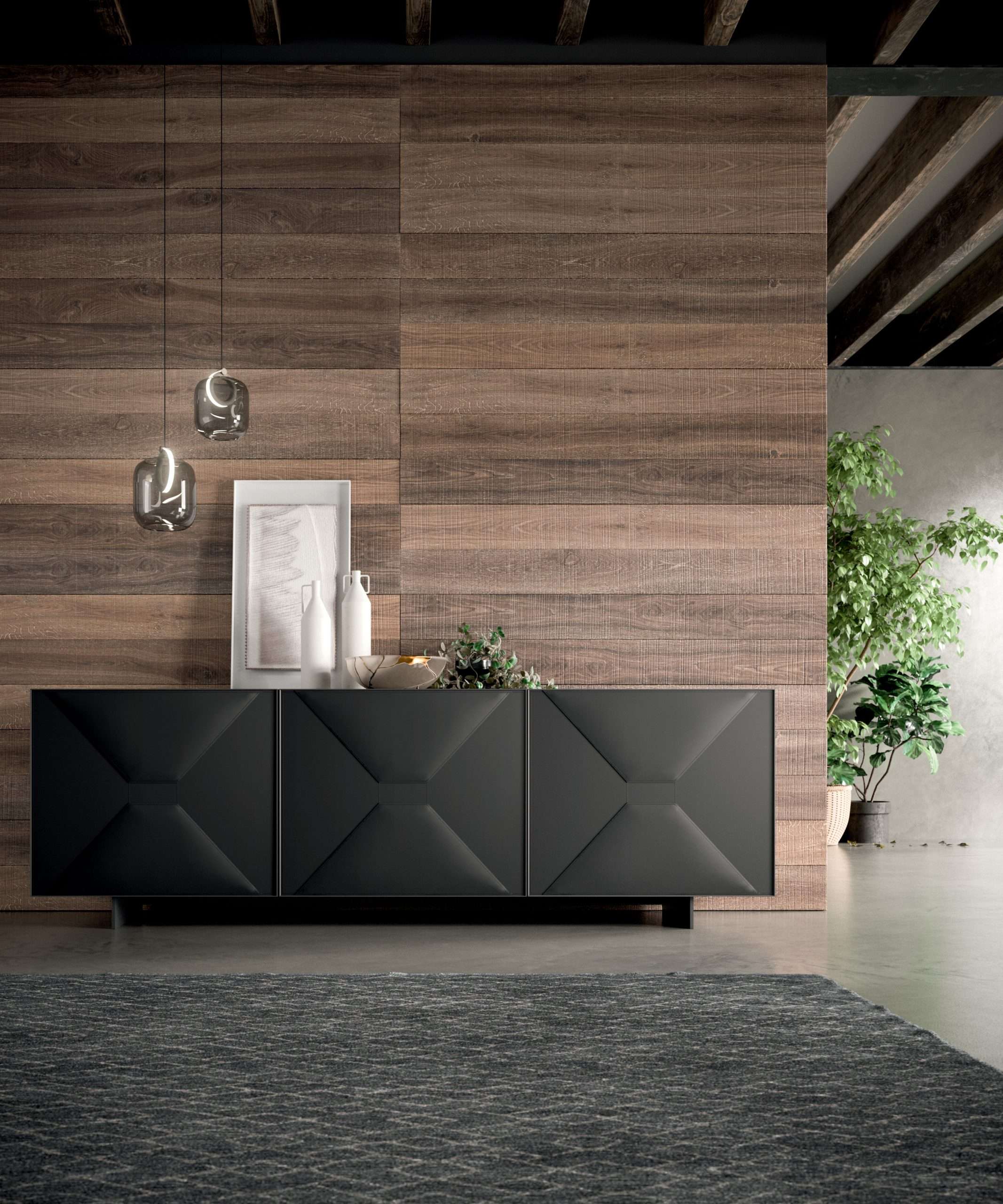 Grace cubes, framed by an aluminum frame. Grace is an idea that takes shape, almost suspended in space, thanks to the lightness of its support legs. The doors covered in leather give elegance to the environment protecting the casket of your desires. Just a touch and they scroll: the curtain opens.