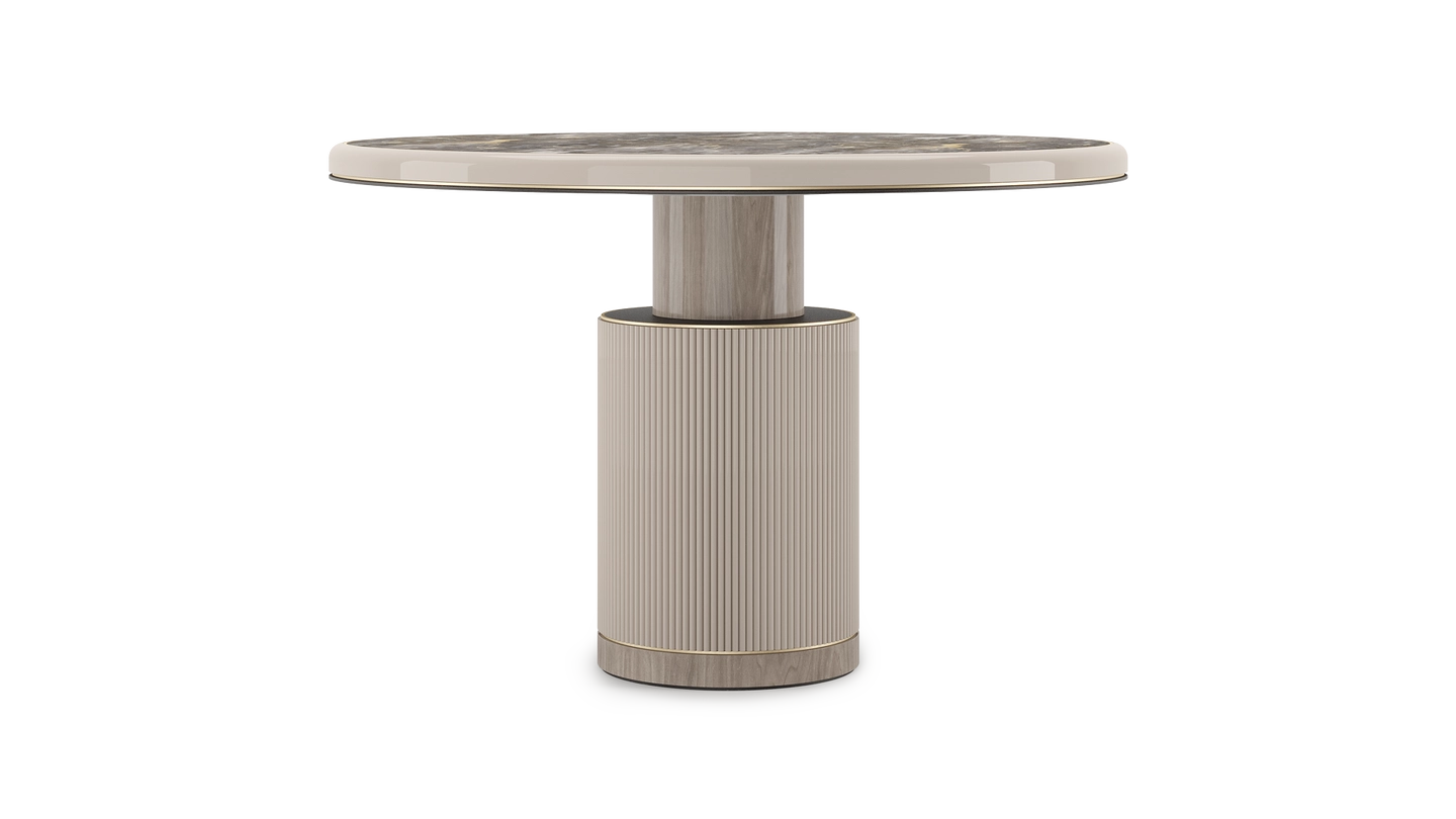 Pared back yet ready to make a statement, the HAMPTONS pedestal table is all about eye-catching grace. A smooth top meets a textured base with accents of stone and brushed brass for an elegant finish.