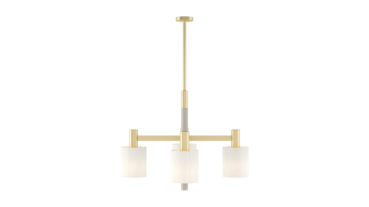 Sleek, simple and timeless, the HELSINKI ceiling lamp is a truly modern classic. Four slim shades hang from brushed-brass arms set in a cross formation, casting a gentle glow that’s perfect for bedrooms, dining areas or living spaces.