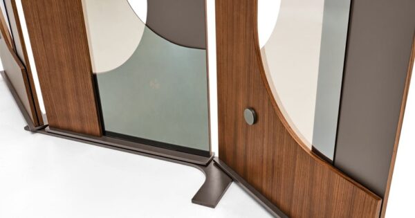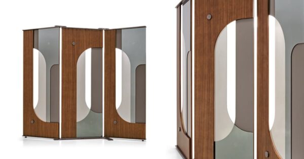 And this is what Gino Carollo has managed to do. In Hide Me, he has created two different types of separation, one from the ground, the other from the ceiling. Each panel is a combination of more materials: zebrano or eucalyptus wood, mirror, varnished wood and metal inserts. By making this obvious contrast, this obvious separation so detailed and yet so measured it reflects our own internal needs and interior acknowledgements.