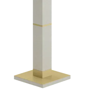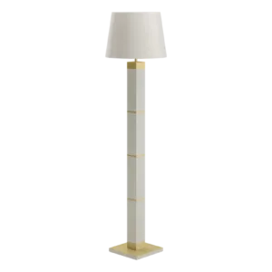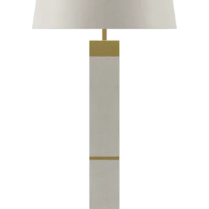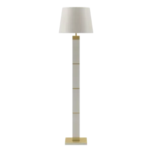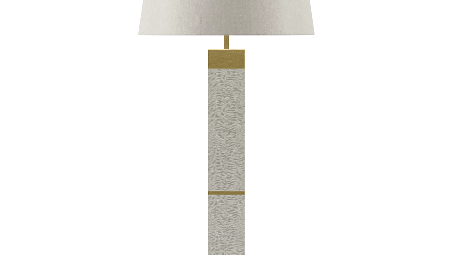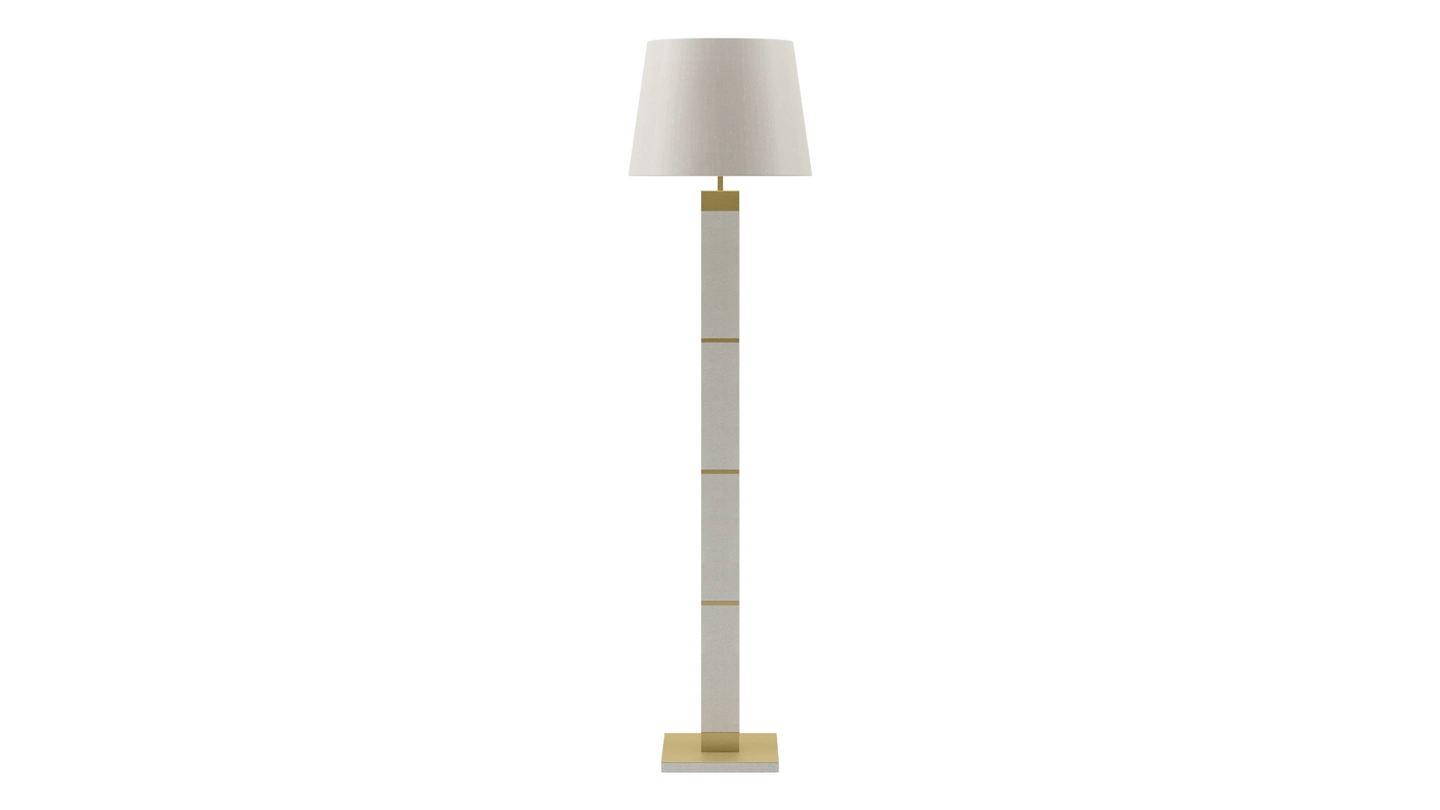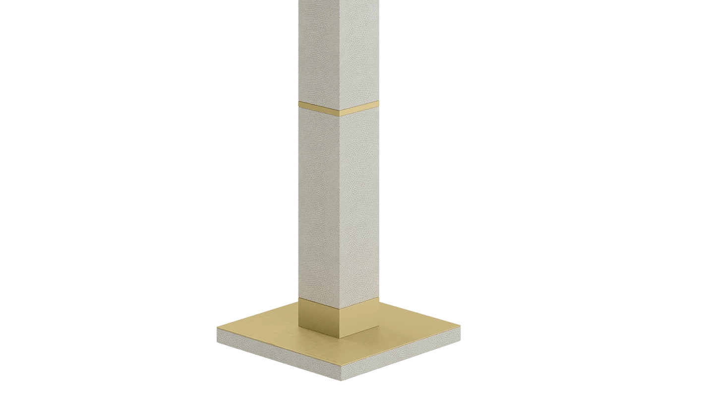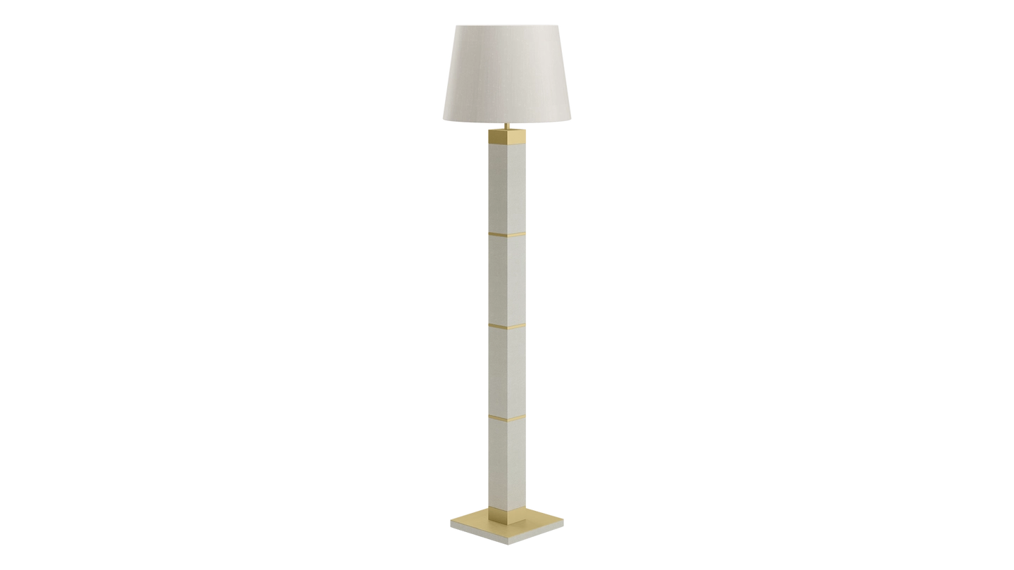A distinctive squared base and stem sets the HOBART floor lamp apart. Covered in sections of leather, intersected with seams of brushed brass, and topped off with a conical double-silk shade, this design celebrates textural difference.