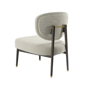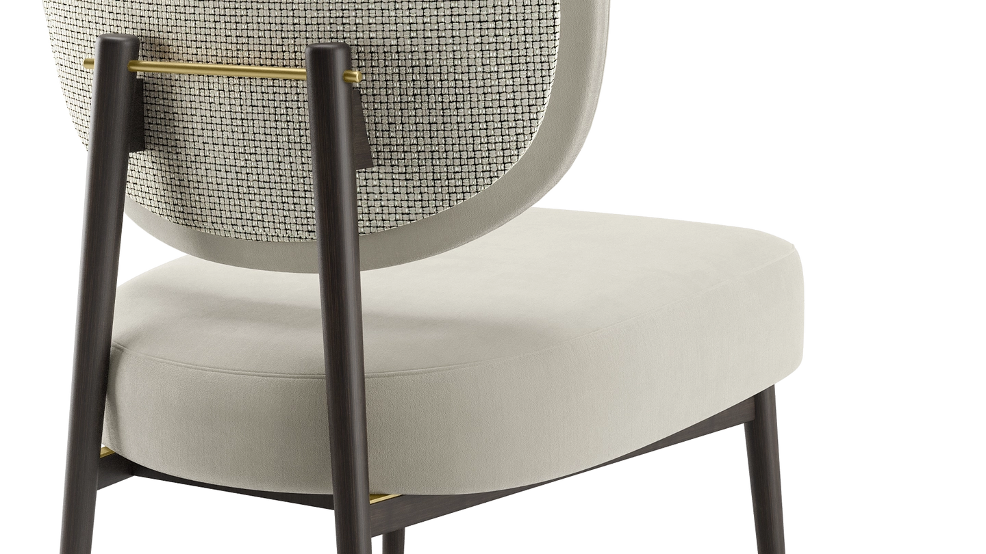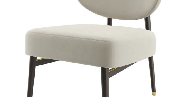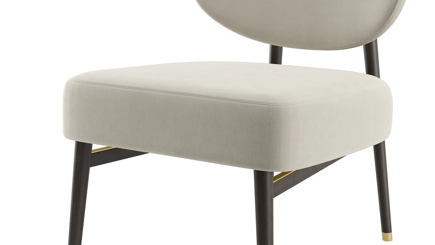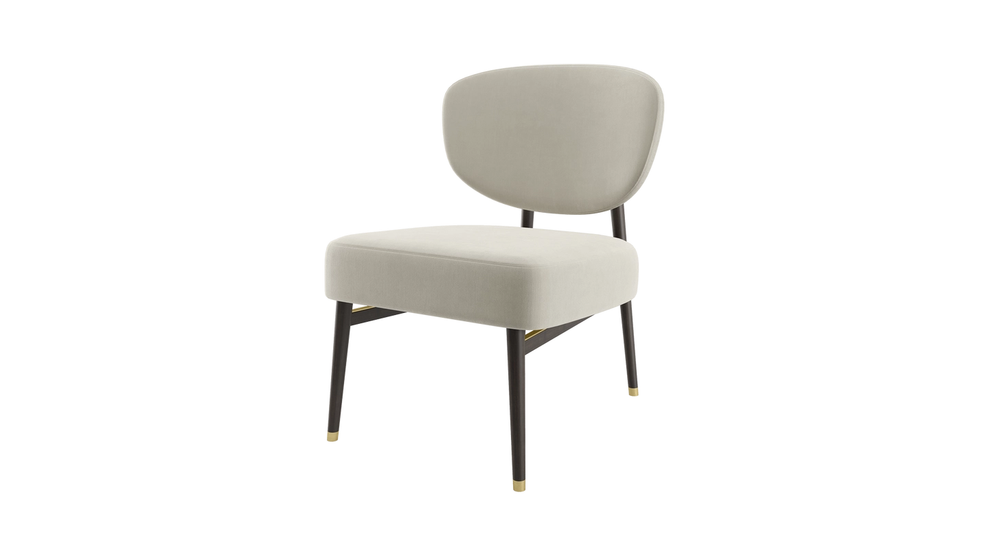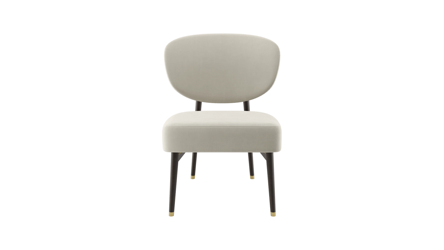 Channeling timeless mid-century style, the HYDRA chair features plush velvet upholstery, a supportive curved back and slim, angled legs capped with brass feet.