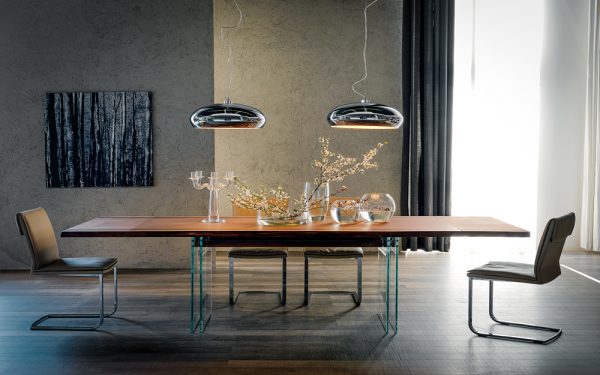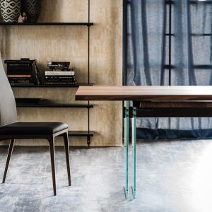 The Ikon Drive is a stunning solid rectangular extendable dining table with irregular natural edges available in a choice of wood finish. The Ikon features a 15mm extra clear tempered glass base and a graphite support beam, which can alternatively be selected in a wood to match the table top. Available in two sizes.