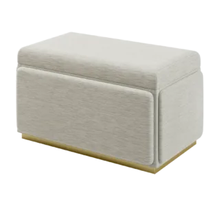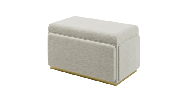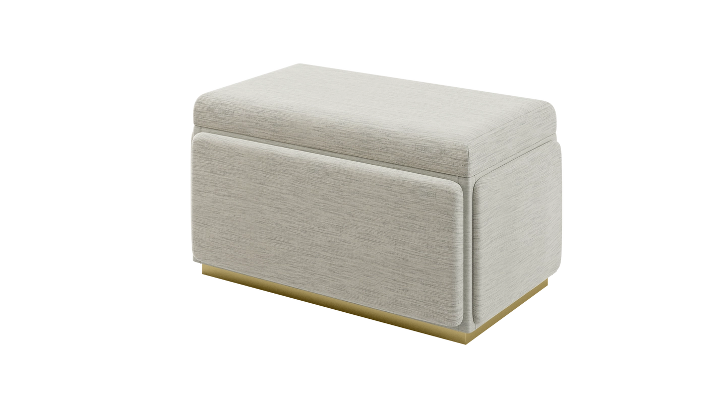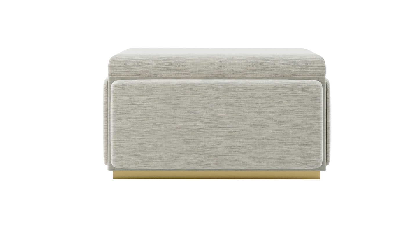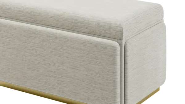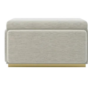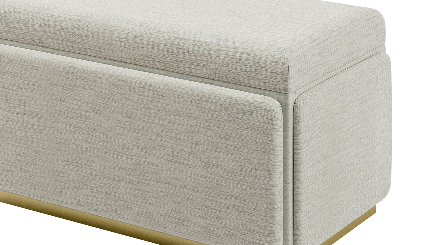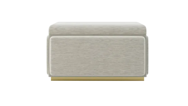 Padded in all the right places, the rectangular WINDSOR bench sits on a metal base that contrast beautifully with the smooth upholstery. Fabric covered panels on all four sides add a softness and multidimensionality to the finished design.
