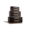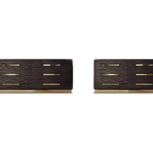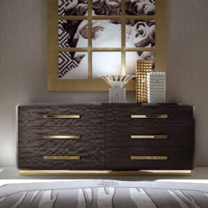 Dresser in makorè mahogany veneer with high gloss polyester finish. Inlaid veneer top, 6 full extension drawers with bottom part in velvet fabric. Base and handles in light gold chrome stainless steel with Giorgio Collection logo.