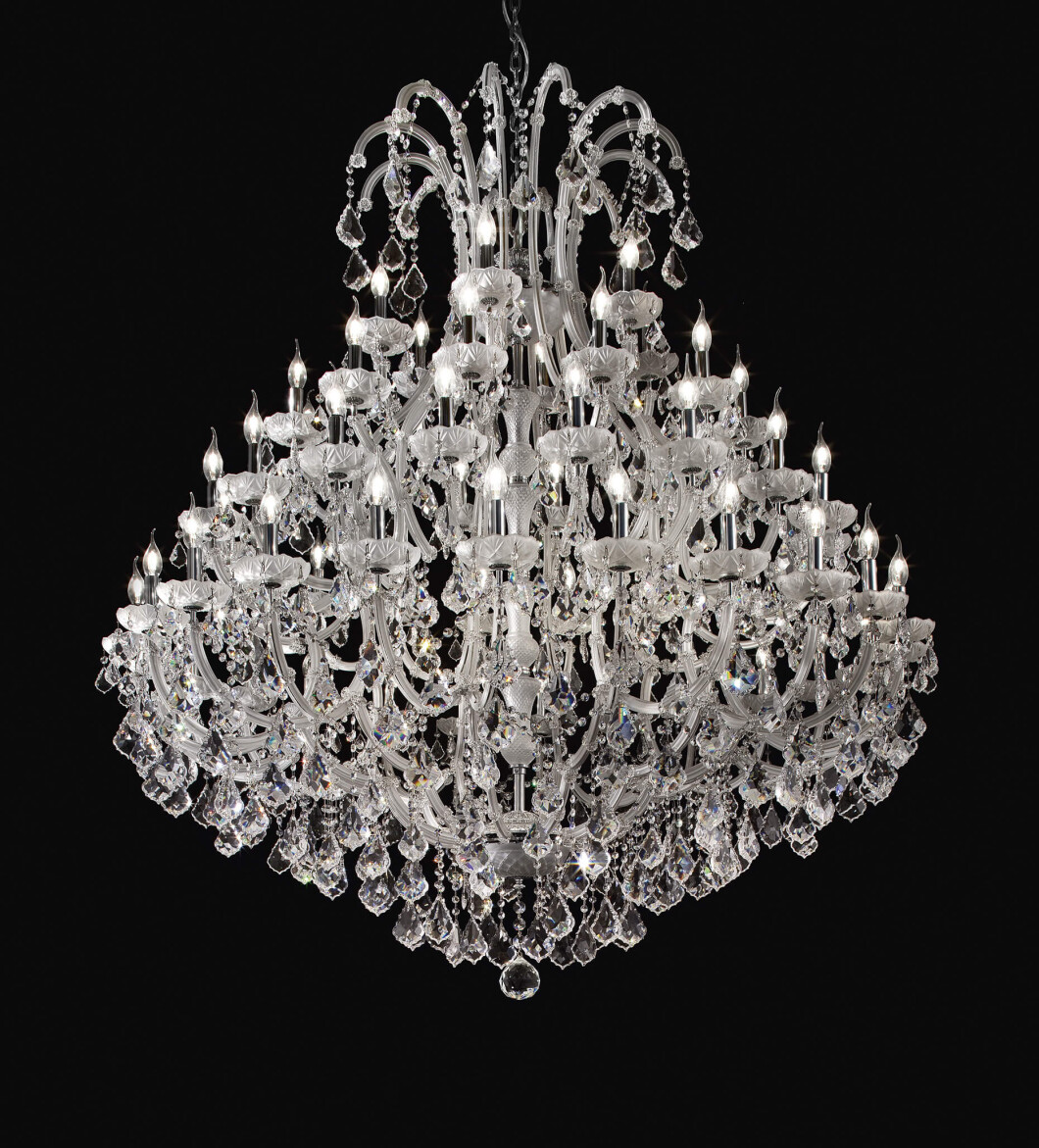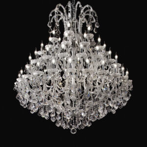 Mariateresa style chandelier, metal structure with chrome finish, clear glass pendants and details. Available in different dimensions.