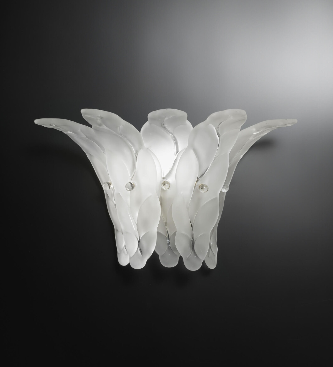 Wall lamp with satin glass leaves and metal with nickel finish. Available in different dimensions.