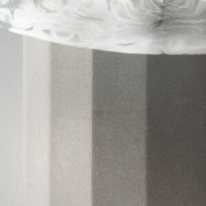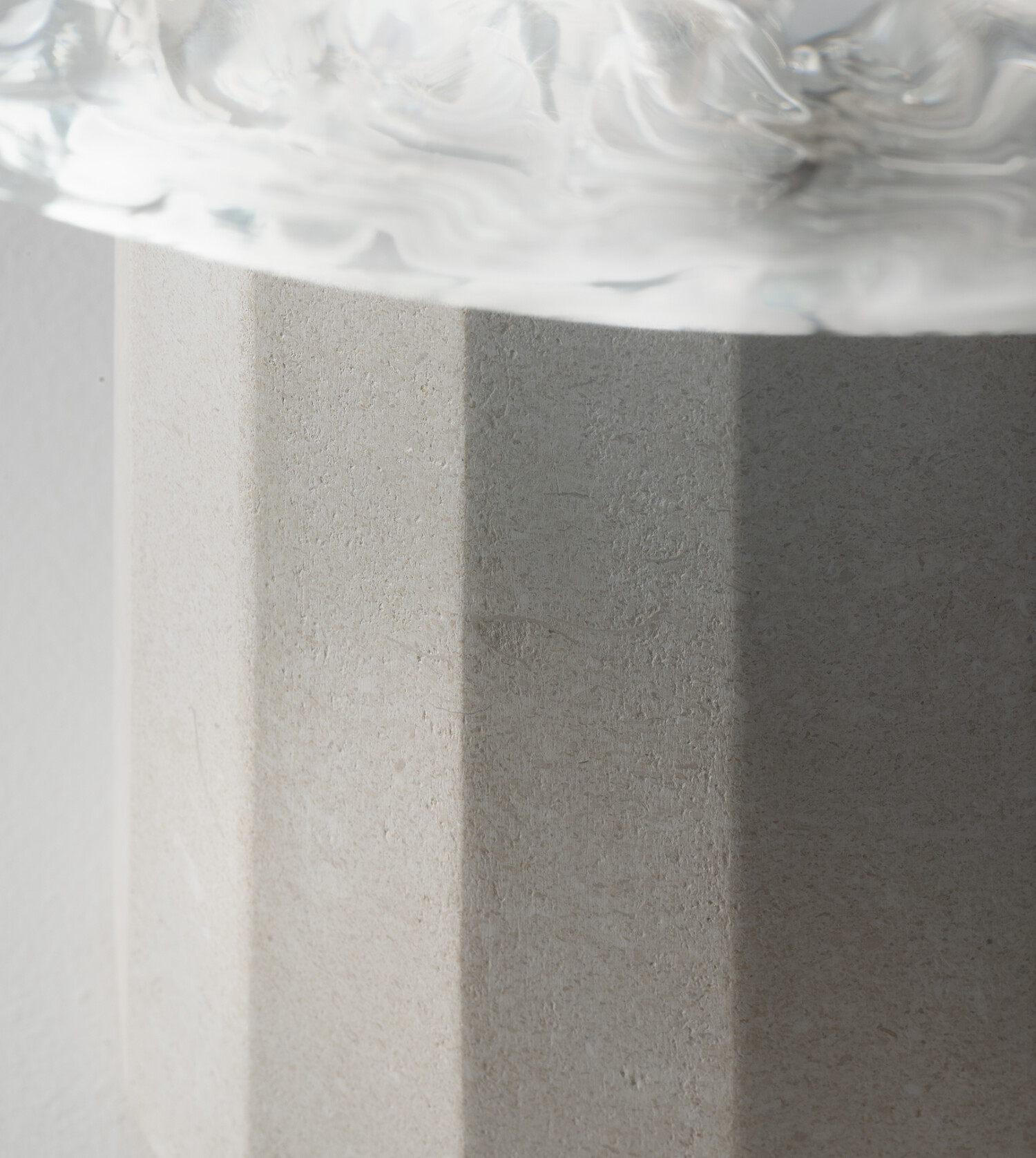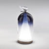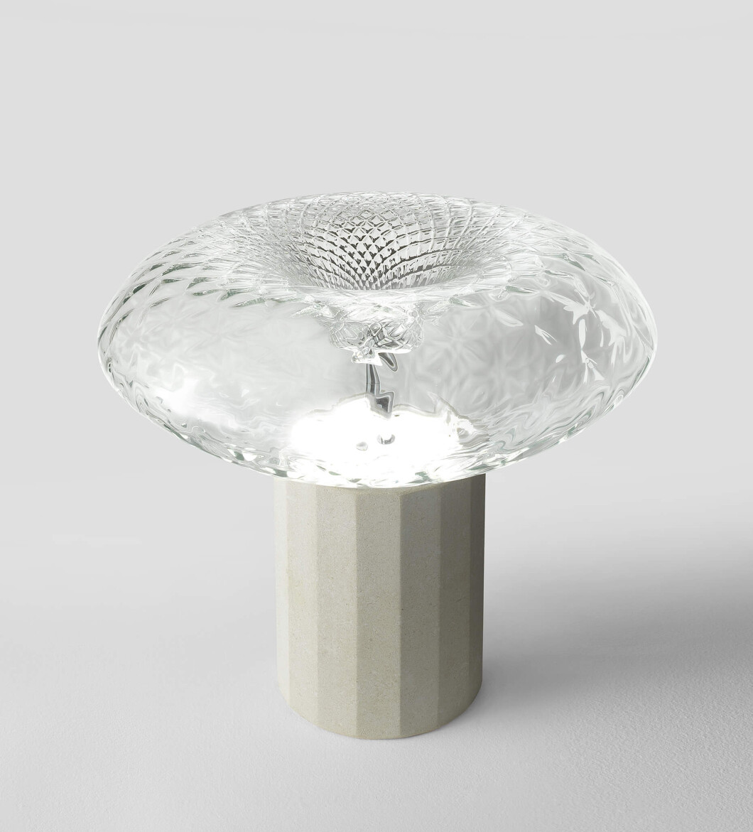 Table lamp in transparent glass with iron grey metal details with Vicenza stone base.