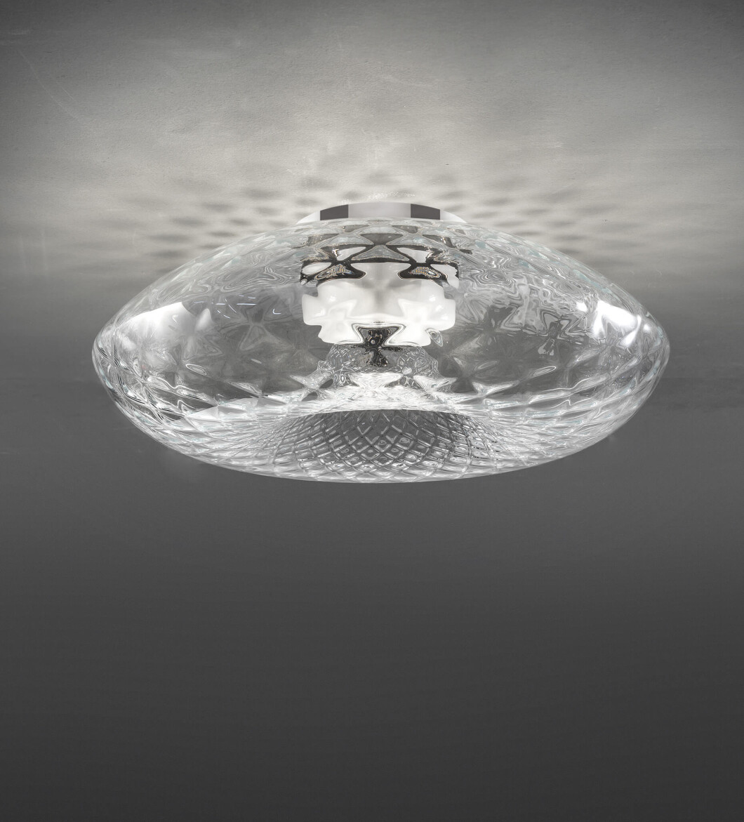 Wall lamp in transparent, white or fumè glass with iron grey metal details.