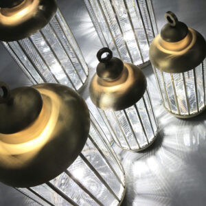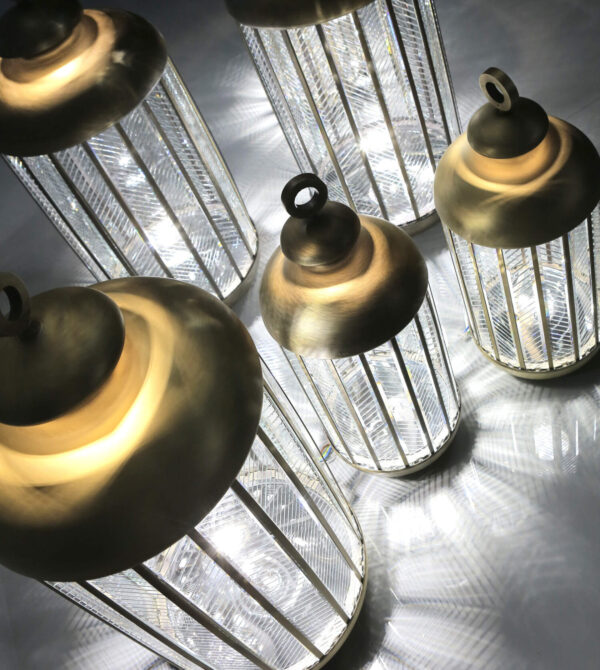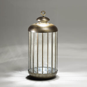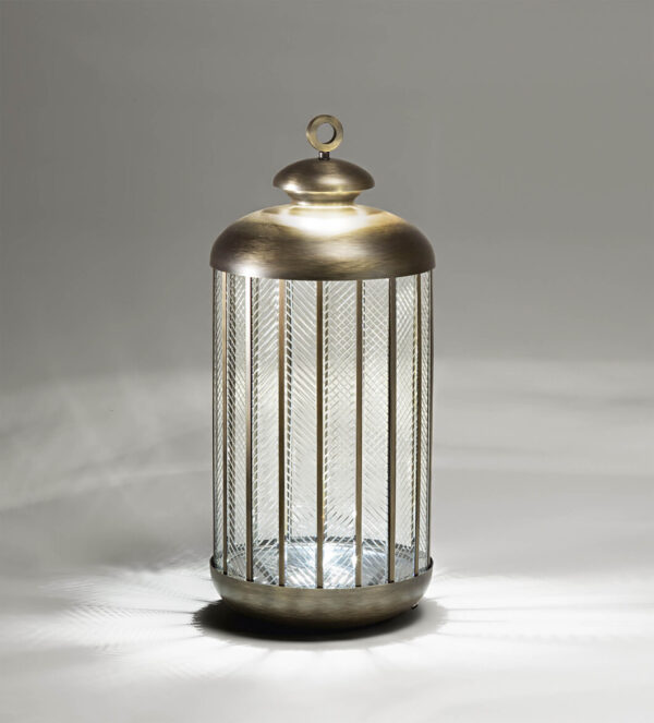 Floor lamp in metal with antique burnished or antique gold finish and carved glass diffuser.