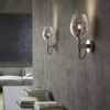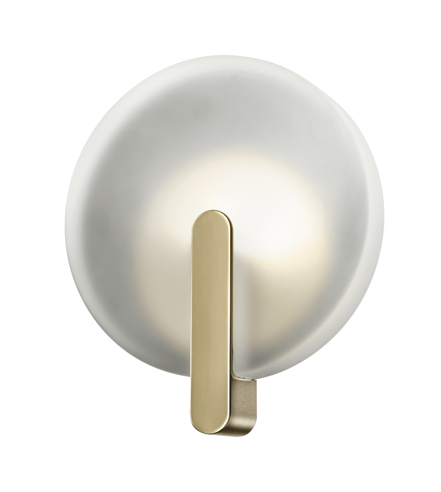 Wall lamp in satin glass or fumè. Metal structure with white, light gold, chrome or iron grey finish.
