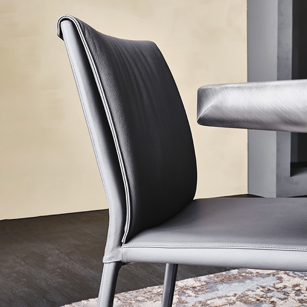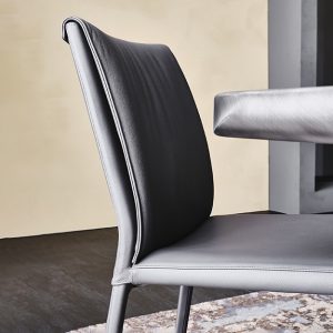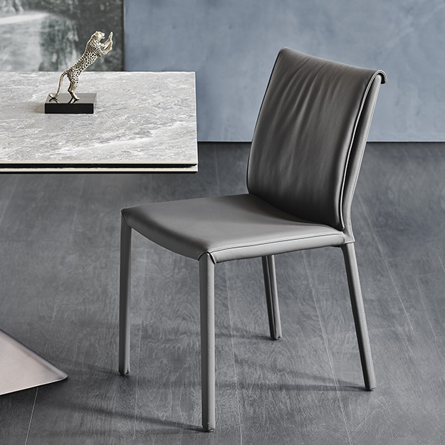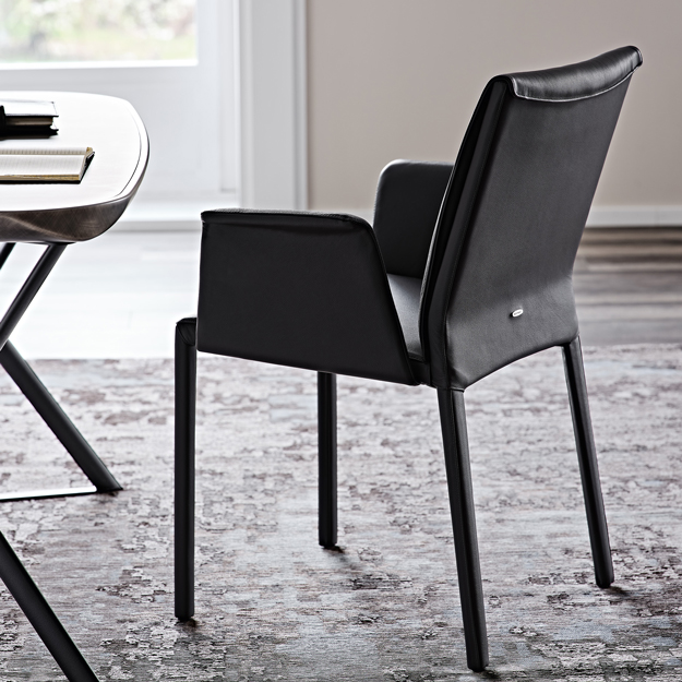 The Italia chair by Cattelan Italia is a sophisticated design with a sleek leather seat, layered backrest detail and fully upholstered steel legs. The gentle backrest curve allows for additional comfort, while the chair can be selected with or without arms. Available in a wide selection of faux leather or real leather finishes.