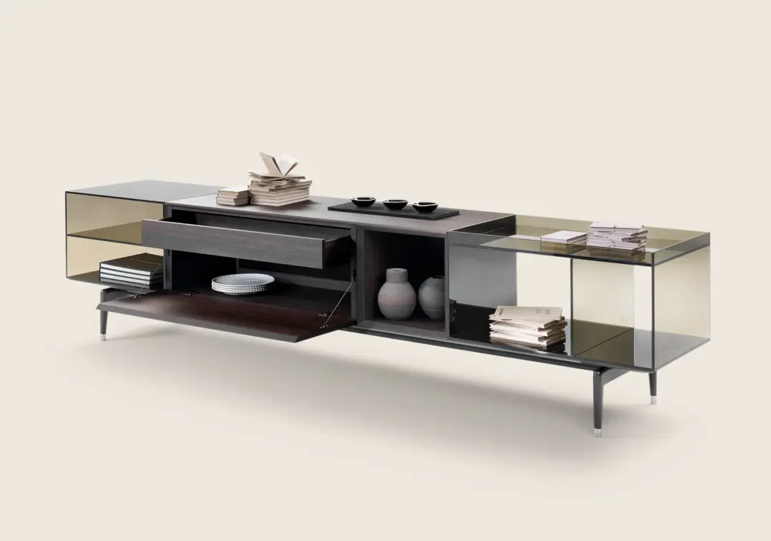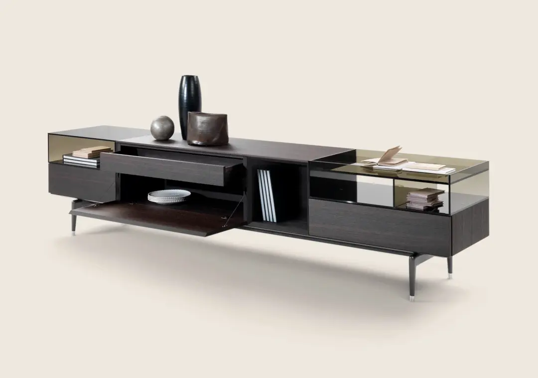 Jeremy family includes compositions with drawers and drop-front doors, with various fittings, each of which is designed to be placed in different parts of the home, from the entry to the living room. All of the elements are finished on the back, making them suitable as room dividers. All these Designs are Fully Bespoke . Our Expert Team can create any Design as per your specifications and requirements. For More information please contact our expert.