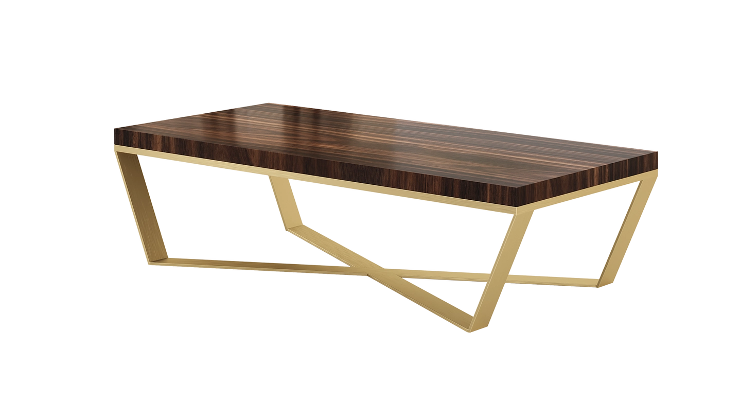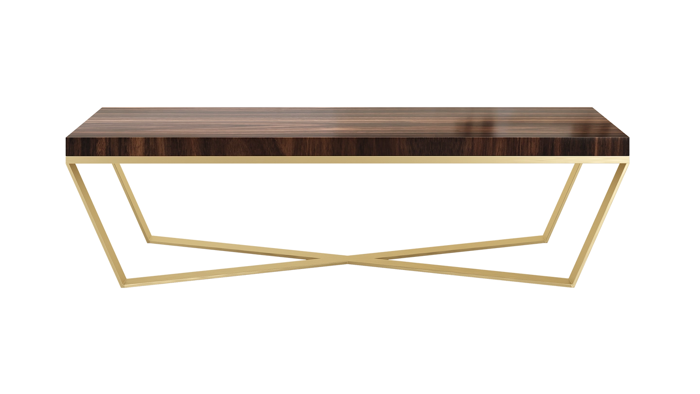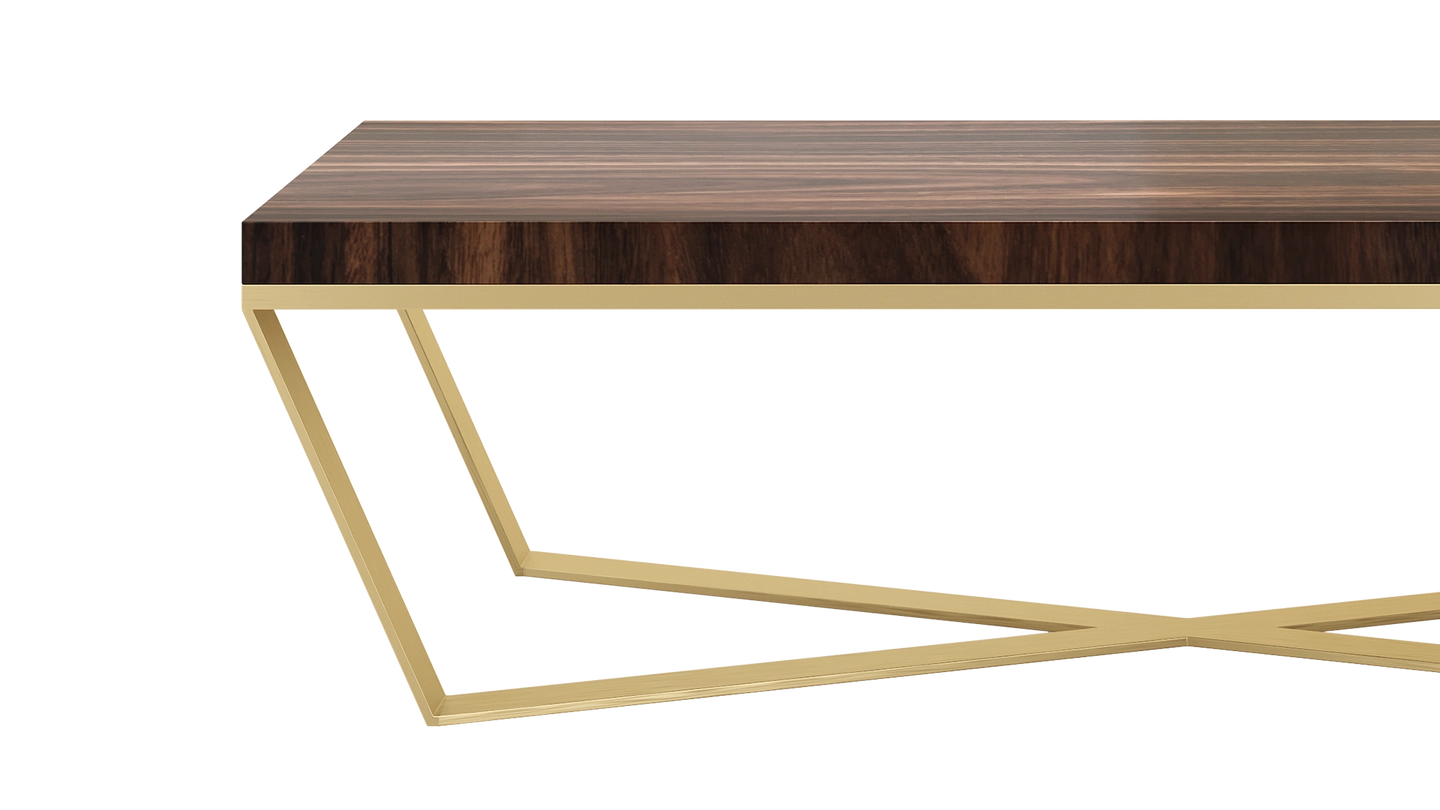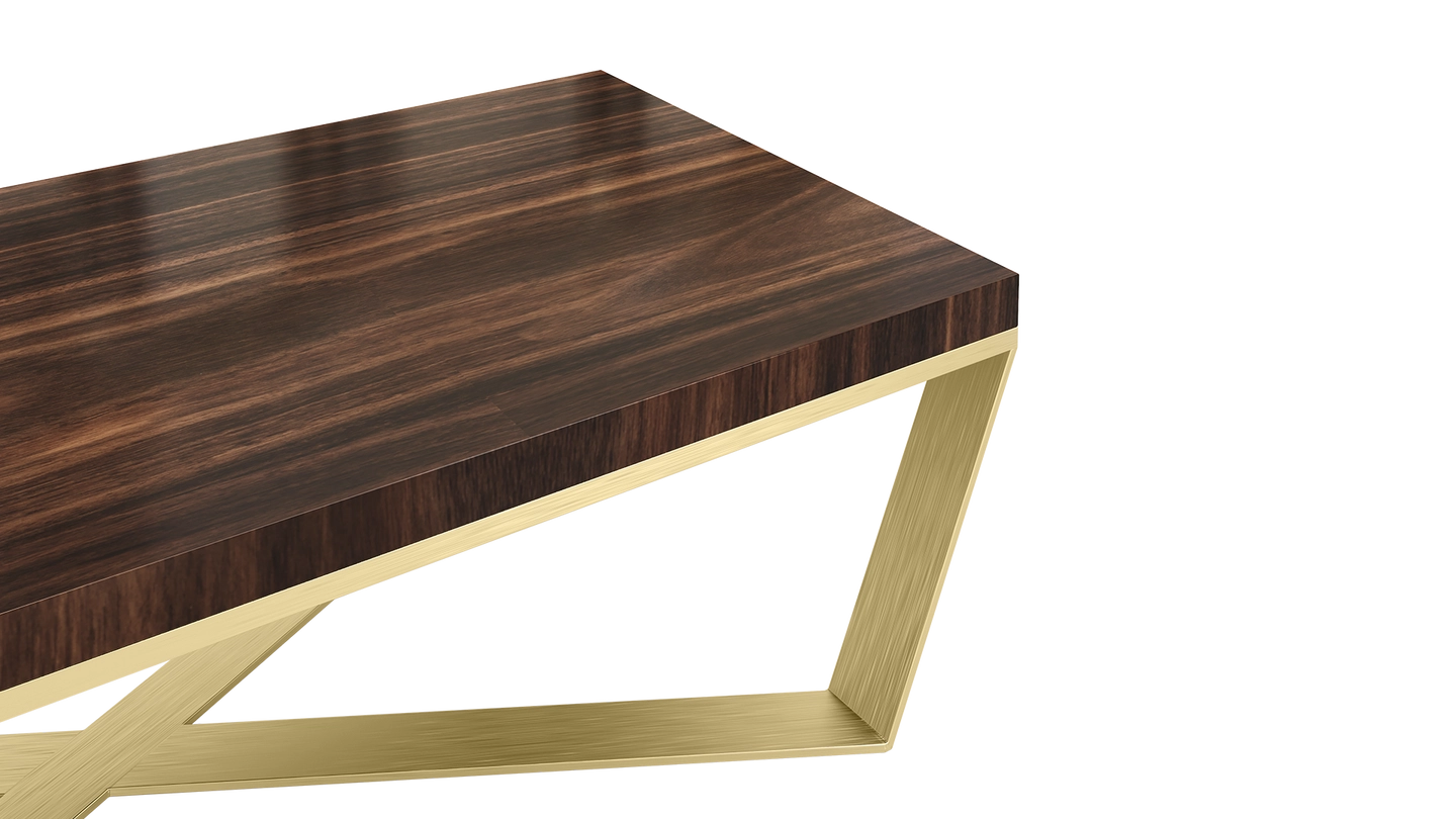 A timeless combination of dark wood veneer and brushed brass, the JOHANNESBURG Coffee Table’s slim, rectangular shape will complement any sofa. A clean-lined and contemporary design, its X-shaped base adds intrigue.