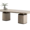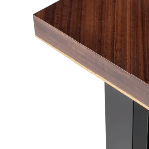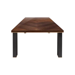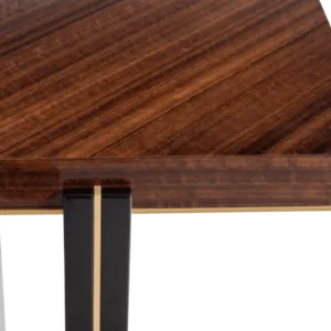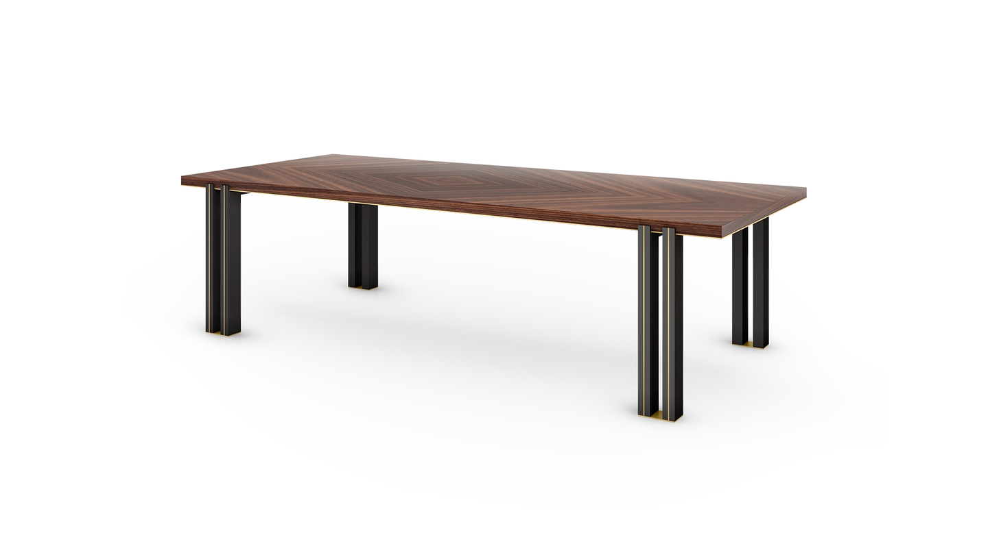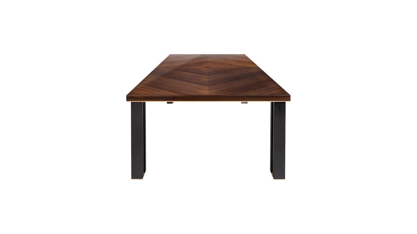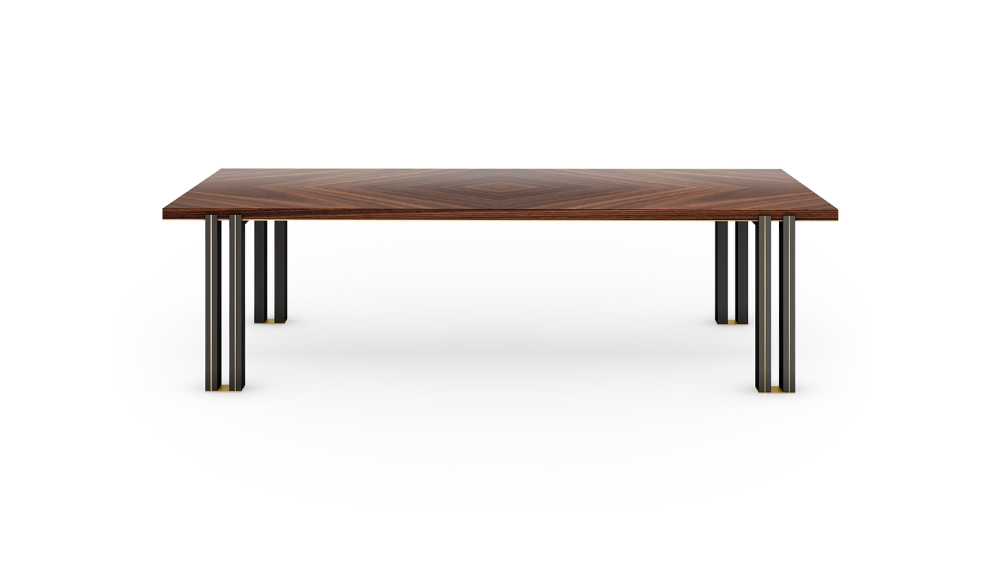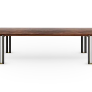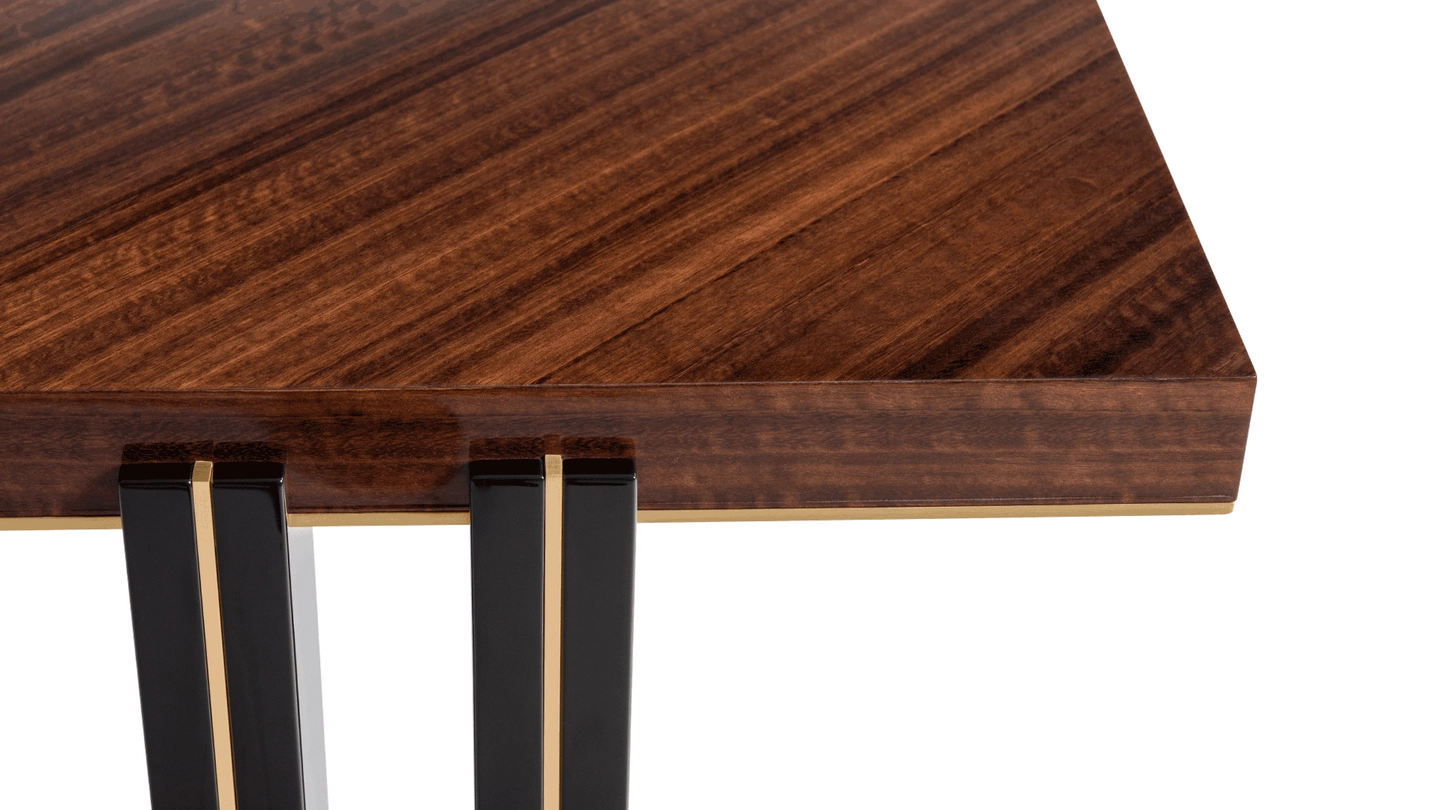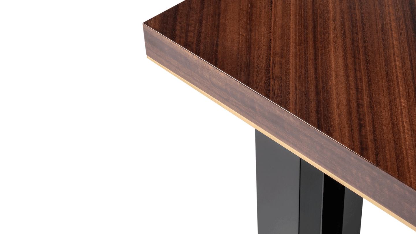 In the case of the KALMAR dining table, extra attention has been given to the double legs, a mixture of glossy lacquer and slender brass.
