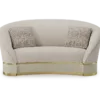 The loveseat-style KANSAS offers a different perspective on sofa design. A true circle filled with plump cushions, it invites you to curl up in absolute comfort. Signature design details include contrast upholstery and a solid wood base.