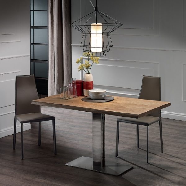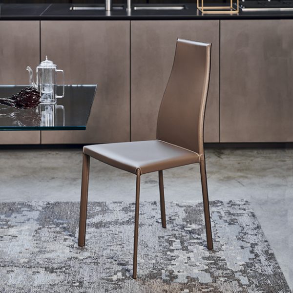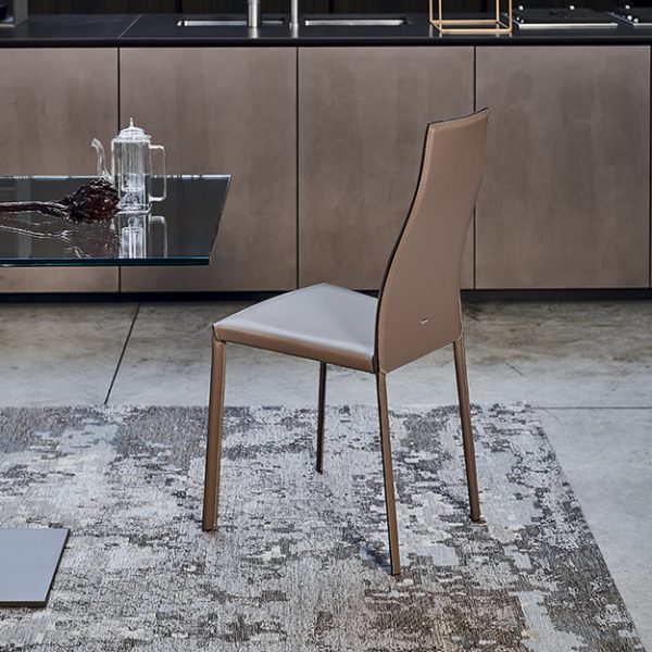 A classic steel-framed dining chair with tapered back detailing, the Kaori by Cattelan Italia is available in a wide choice of hide leather colours with stitching options for a bespoke look.