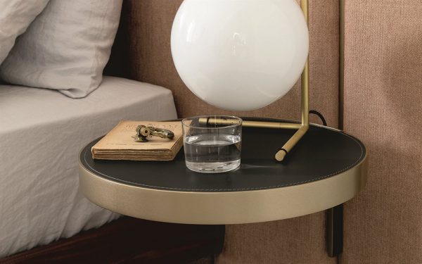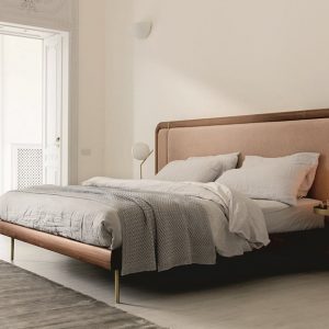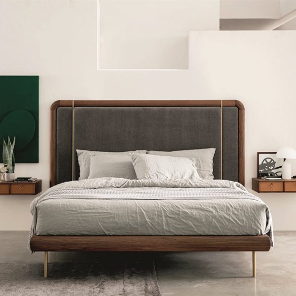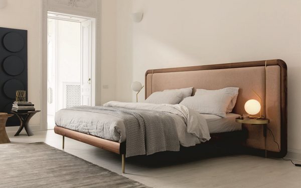 Stylish and contemporary, the Killian Bed features an upholstered headboard with delicate brushed brass detailing. The headboard is available in two heights and can be customised in a choice of Italian leathers or fabrics from the Porada collection.