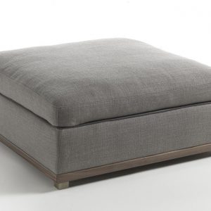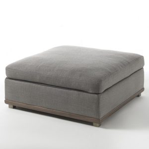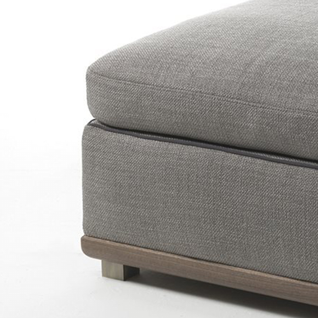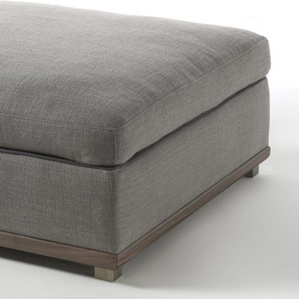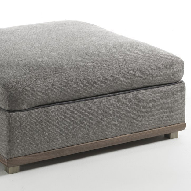 The Porada Kirk Pouf is an elegant square ottoman design upholstered in a variety of finishes and featuring a piped edge detail to the sides. A smooth solid Canaletto walnut wood base supports the pouf and is complemented by stylish square bronzed brass feet.