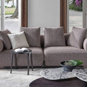 Available in a variety of fixed and modular sizes, upholstered in a selection of fabrics or leathers from the collection. Fabric covers are removable, while leather covers are fixed. Klem is filled with mixed density polyurethane foam, with feathers and polyurethane foam for the back cushions.