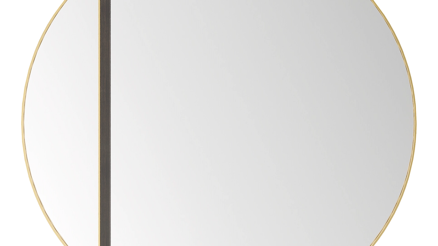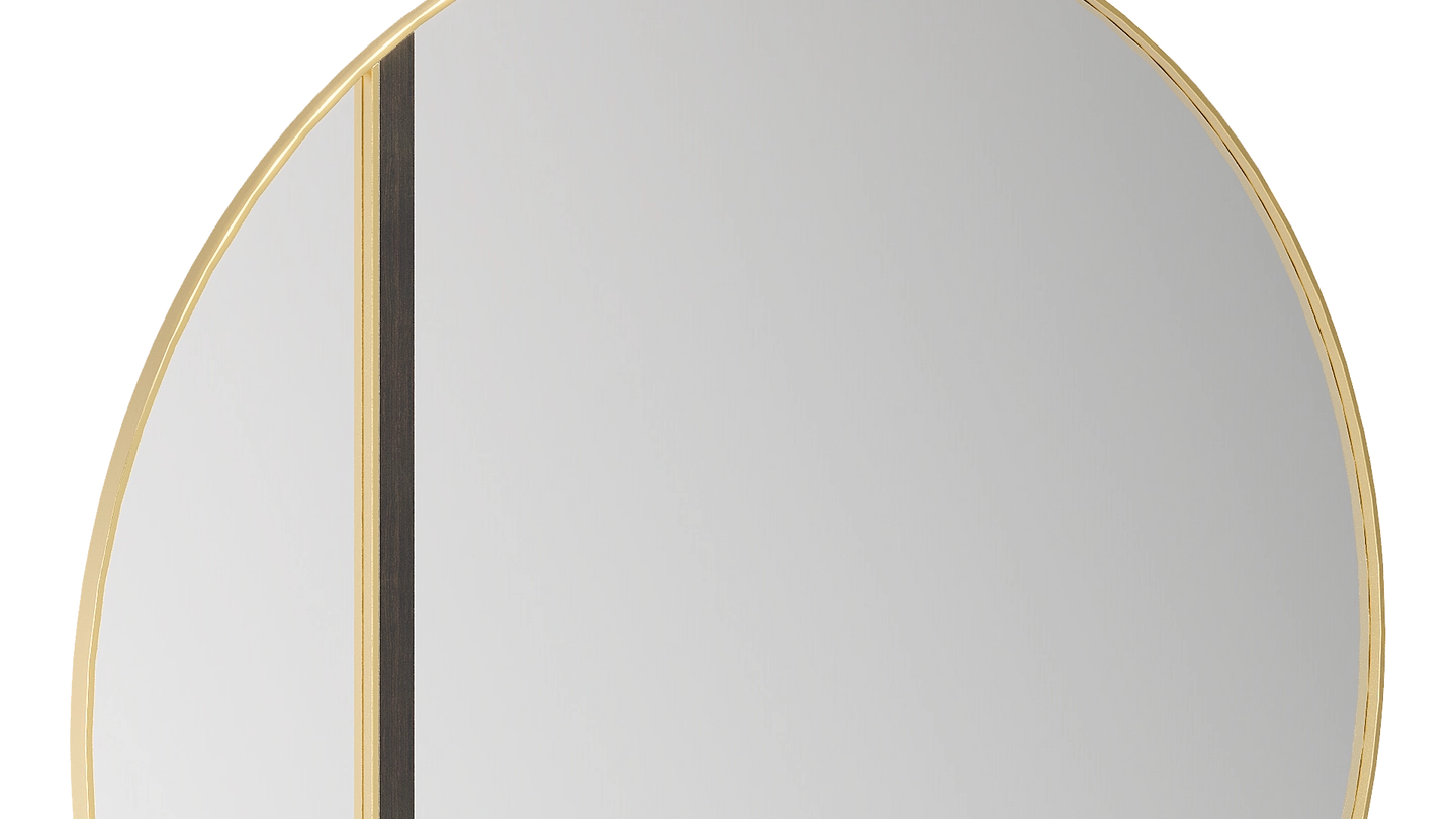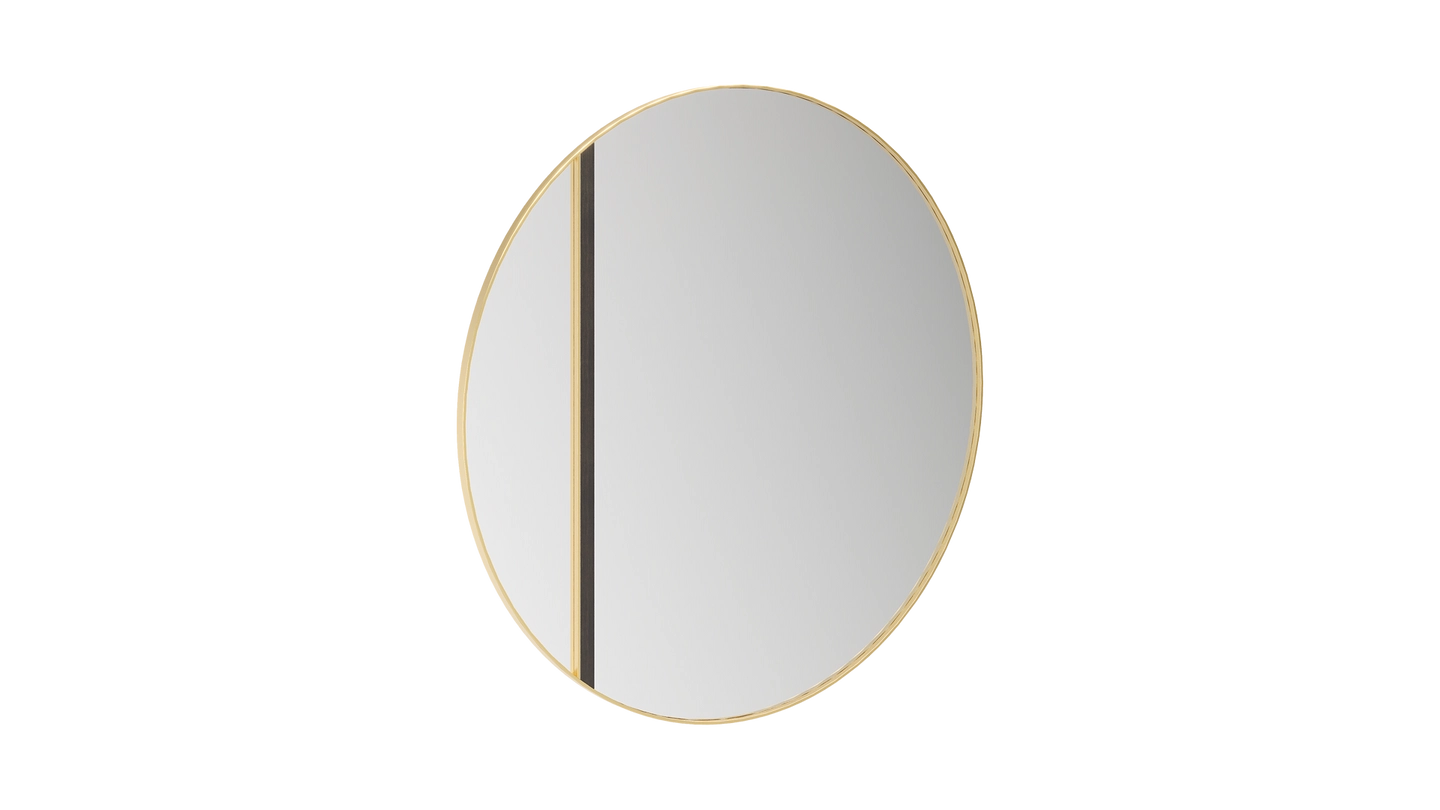 The KYIV mirror combines ultra-modern brass angles with a softly curved mirror. Its ceiling mounted design ensures it makes a statement wherever it is hung.