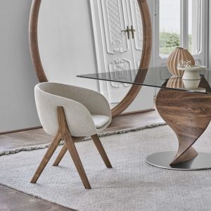 Select from a range of fabric and leather finishes for the seat and a choice of ash or canaletto walnut for the wood frame.
