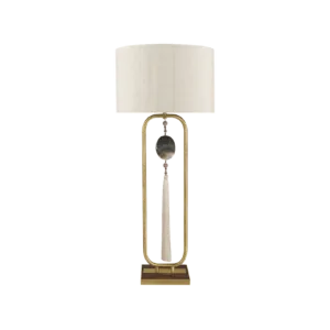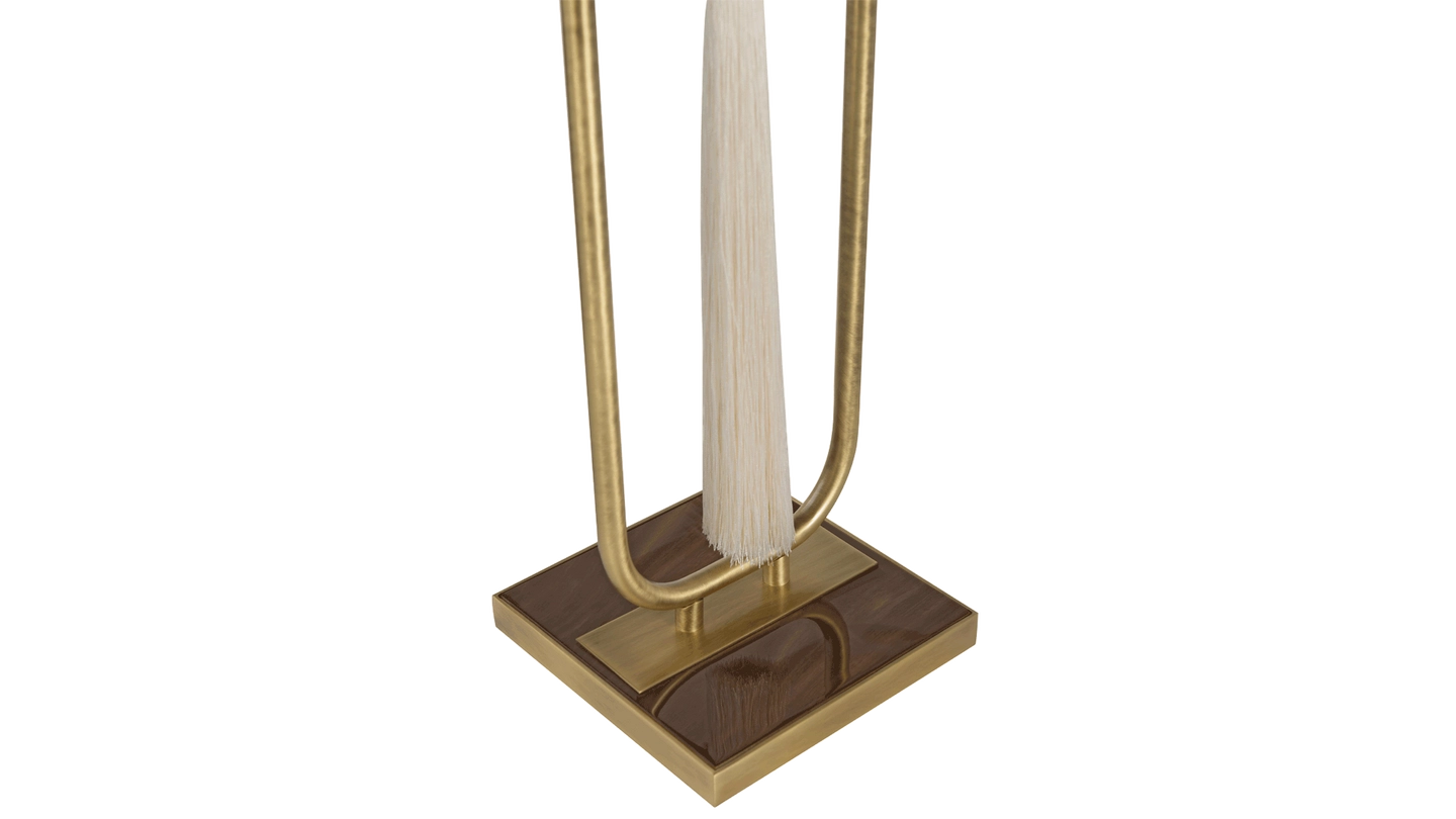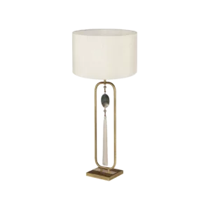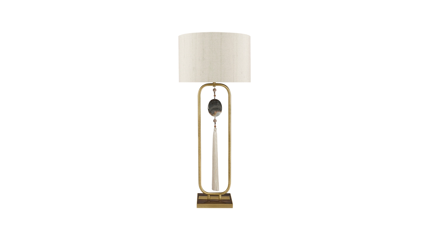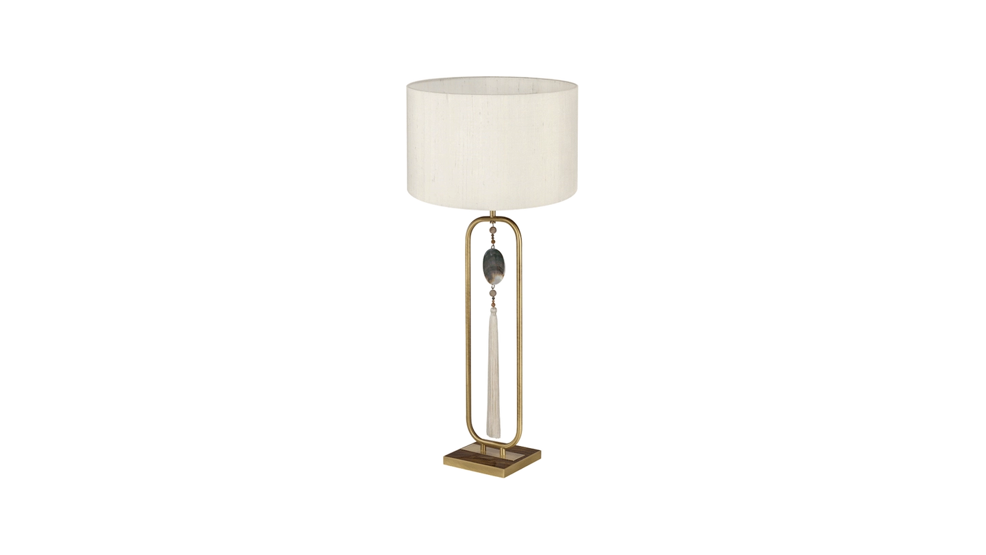 Looking to add an international flavour to your space? The glamorous LAOS table lamp will do just that. Crafted from wood veneer and brushed brass, its double-silk shade spotlights an ornamental tasselled pendant when illuminated.