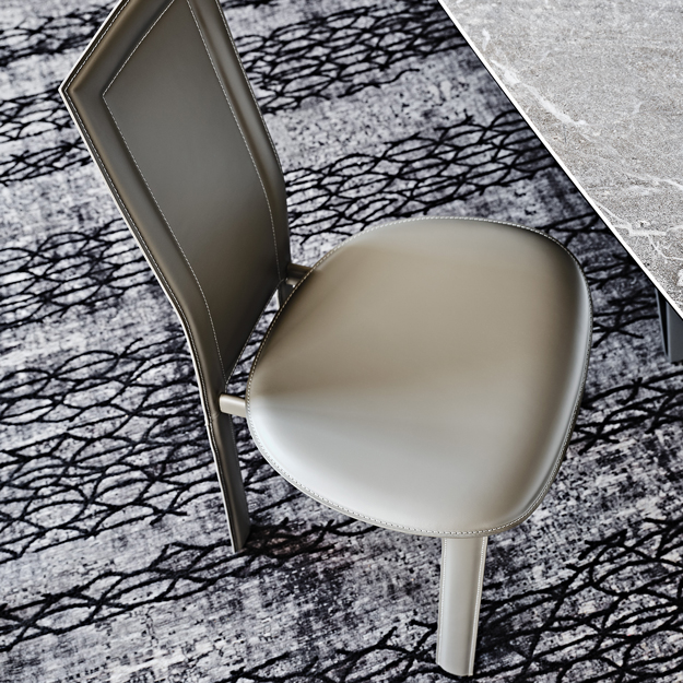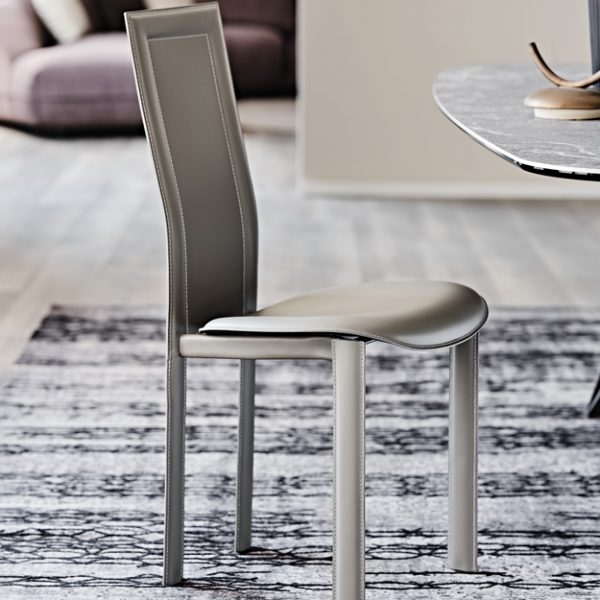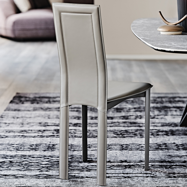 The Lara is a uniquely designed steel-framed chair with a rounded seat and rectangular back. Available fully upholstered in a wide variety of Italian leather colours from the collection.