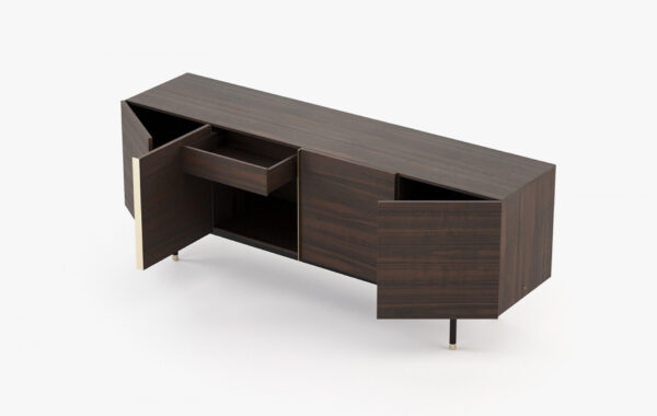 The Cuba sideboard is a contemporary storage solution featuring four doors with push-latch hardware and one inner drawer.The Cuba Sideboard by Laskasas is a theatrical and elegant form. A confident angular silhouette materialised from wood envelops the structure, with a push to open door function All these Designs are Fully Bespoke . Our Expert Team can create any Design as per your specifications and requirements. For More information please contact our expert.