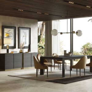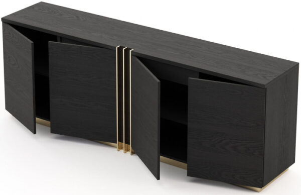 The D’Arc sideboard is designed to stand out in any dining or living room, featuring a clean design on a wood structure and metallic details. A bold, wood veneered frame is supported by a sleek metallic base, for ultra-modern bravado, whilst a discreet metal trim serves to catch the eye for added luxe and opulent embellishment. Â All these Designs are Fully Bespoke . Our Expert Team can create any Design as per your specifications and requirements. For More information please contact our expert.