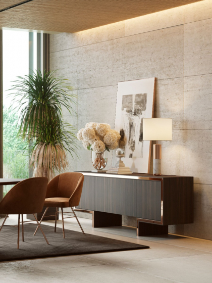 The Isis sideboard is a contemporary storage solution with a mid-century style twist. It features a shimmering frame and is a part of the Isis collection, bringing a touch of modern style to any dining room.Finished with a shimmering border, the sideboard relishes in a luxe, mature presence for a stylish, contemporary interior. All these Designs are Fully Bespoke . Our Expert Team can create any Design as per your specifications and requirements. For More information please contact our expert.