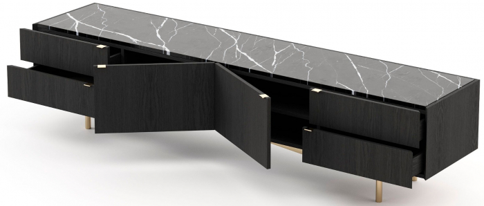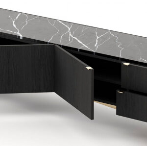 The Lewis TV cabinet is a playful piece with a wood pattern, accented by its wooden body and marble top. It features two doors and four drawers, providing a luxurious touch to any decor project. All these Designs are Fully Bespoke . Our Expert Team can create any Design as per your specifications and requirements. For More information please contact our expert.