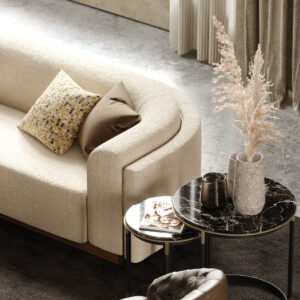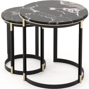 The Lyssa side table boasts a strong geometric design with a metallic structure, metallic details, and a marble top crafted by skilled Portuguese artisans. The Lyssa Side Table boasts a sweeping round table of which the undulation is replicated in a lower panel for storage space. Â All these Designs are Fully Bespoke . Our Expert Team can create any Design as per your specifications and requirements. For More information please contact our expert.