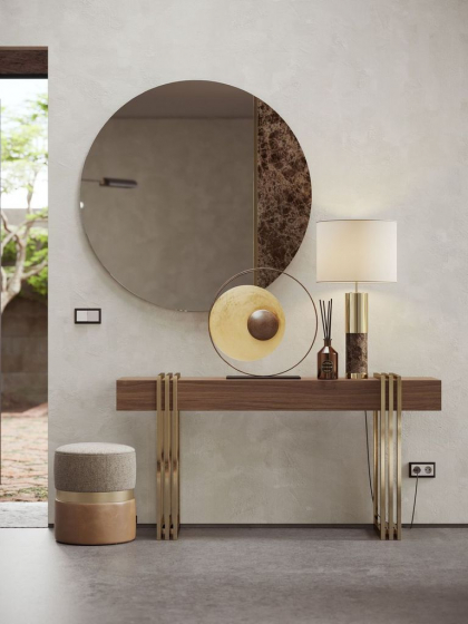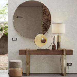 Rosane mirror is a unique wall mirror that challenges conventional design and creates a beautiful space. The circular shape of this mirror is made from a mix of materials, including marble and metal, and features a thin metal line for added sophistication. All these Designs are Fully Bespoke . Our Expert Team can create any Design as per your specifications and requirements. For More information please contact our expert.