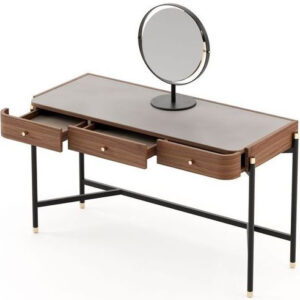 The Rosie dressing table is an elegant and iconic piece, featuring contemporary style with seductive lines, a sleek iron structure, three drawers, and a bullseye mirror with a metal frame, perfect for a glamorous or classic boudoir. Â All these Designs are Fully Bespoke . Our Expert Team can create any Design as per your specifications and requirements. For More information please contact our expert.