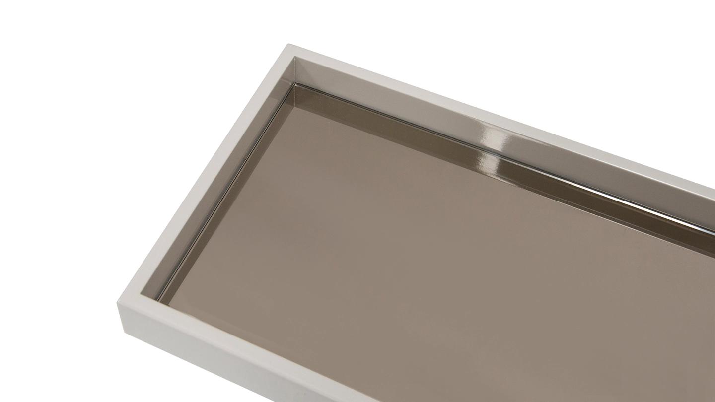 With their lacquered wood construction and bronze mirror inlays, our LASSA trays are both practical and beautiful. Use for displaying treasured objects or for elegant storage on a console or dresser.