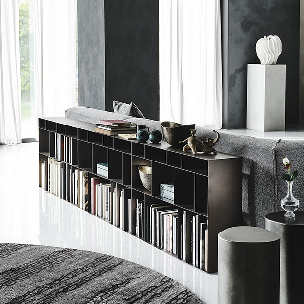The Latitude Low Bookcase by Cattelan Italia is a contemporary open bookcase composed of modular units in embossed lacquered steel, that can be arranged wall affixed or freestanding. Available in a selection of styles and finishes.