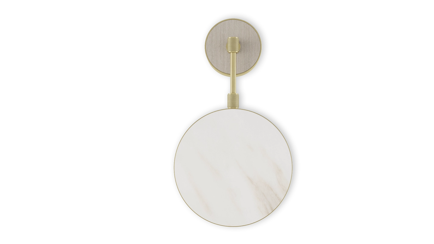 The design of the discreet LAYSAN wall lamp is based on a pendulum and casts an ambient glow by dappling light across the wall.